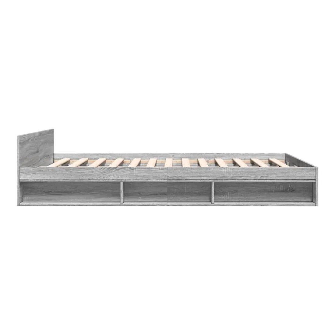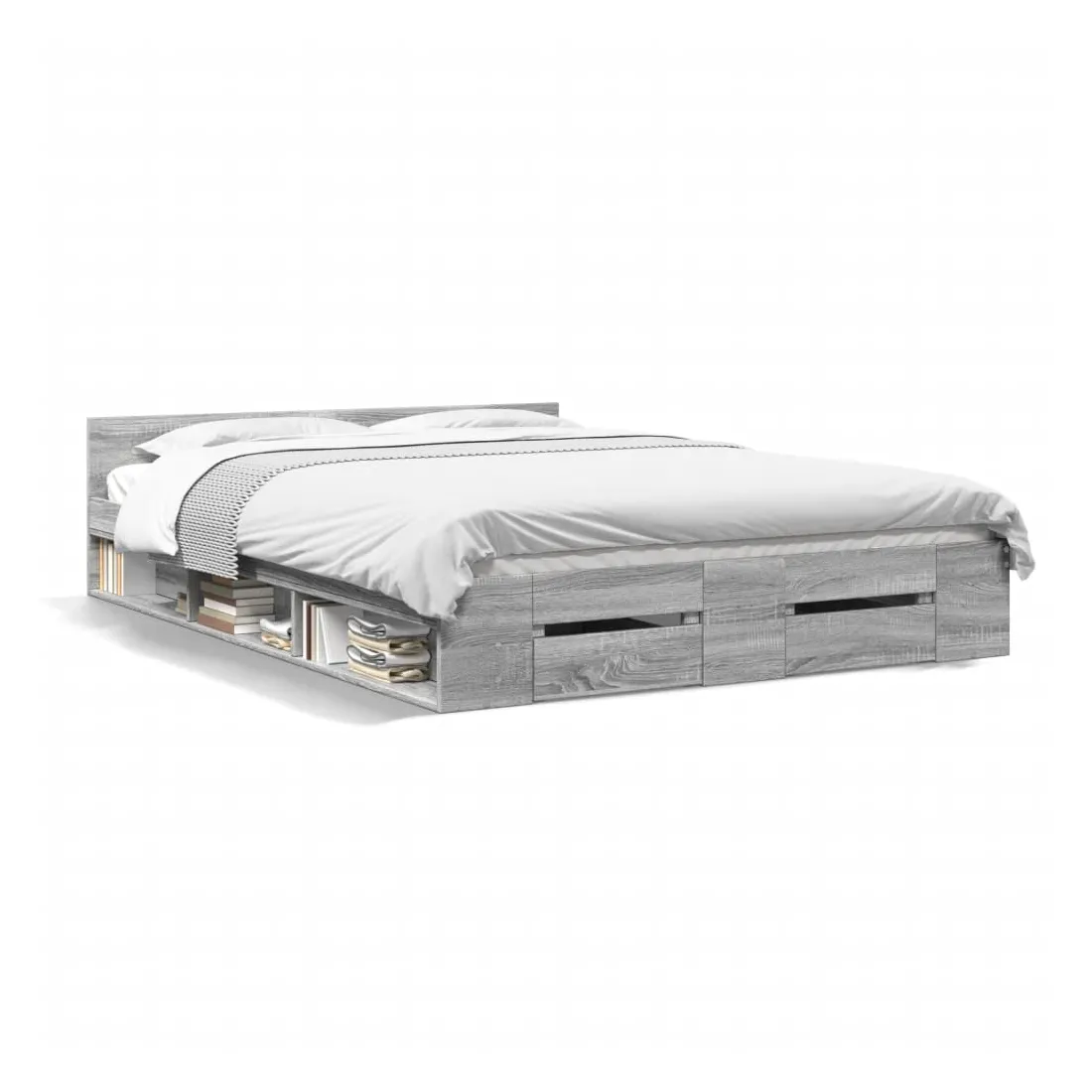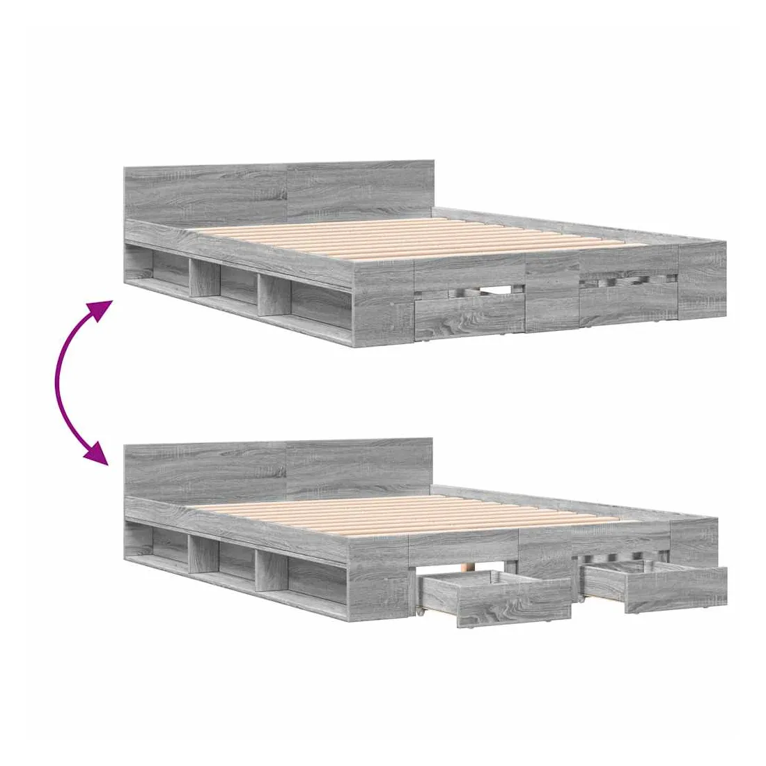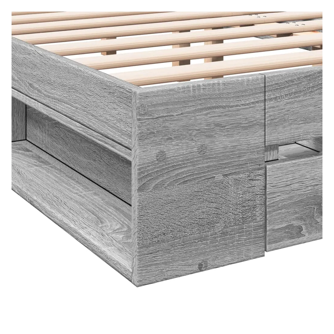 Ajoutez une touche moderne à votre chambre à coucher avec ce cadre de lit avec tiroirs ! Il apportera une touche pratique et décorative à votre espace de vie. Matériau durable : le cadre de lit est fabriquée en bois d'ingénierie. Le bois d'ingénierie est d'une qualité exceptionnelle avec une surface lisse et présente également de la résistance, de la stabilité et de la résistance à l'humidité.Lattes robustes : les lattes de contreplaqué assurent une bonne répartition du poids, garantissant que le matelas reste en place à chaque torsion de votre corps pendant le sommeil.Fonction de rangement : les tiroirs de lit et les compartiments latéraux inclus offrent suffisamment d'espace de rangement pour ranger vos articles essentiels, gardant votre pièce propre et bien rangée. Bon à savoir :Un matelas n'est pas inclus avec ce lit. Nous offrons une sélection variée de matelas. Vous pouvez consulter notre boutique pour trouver un matelas assorti.