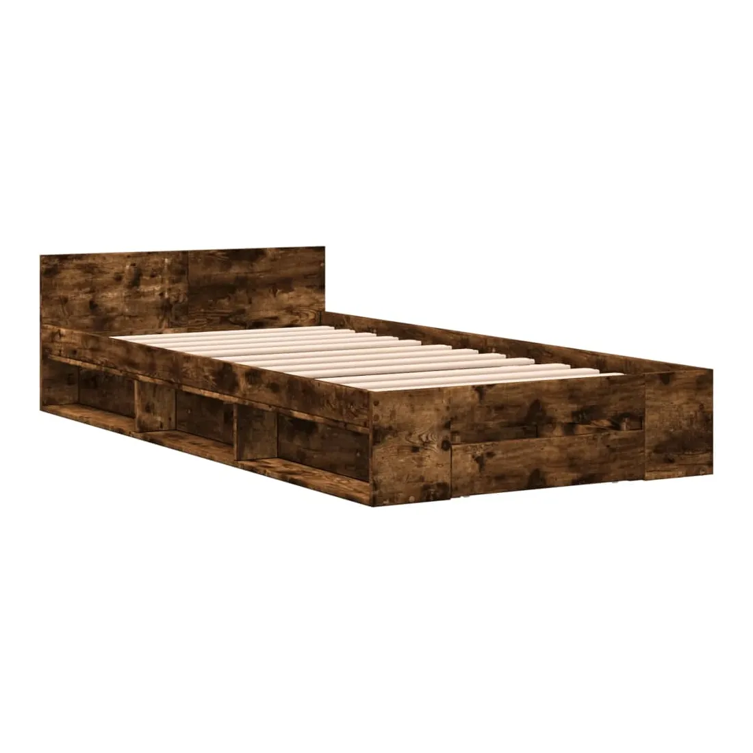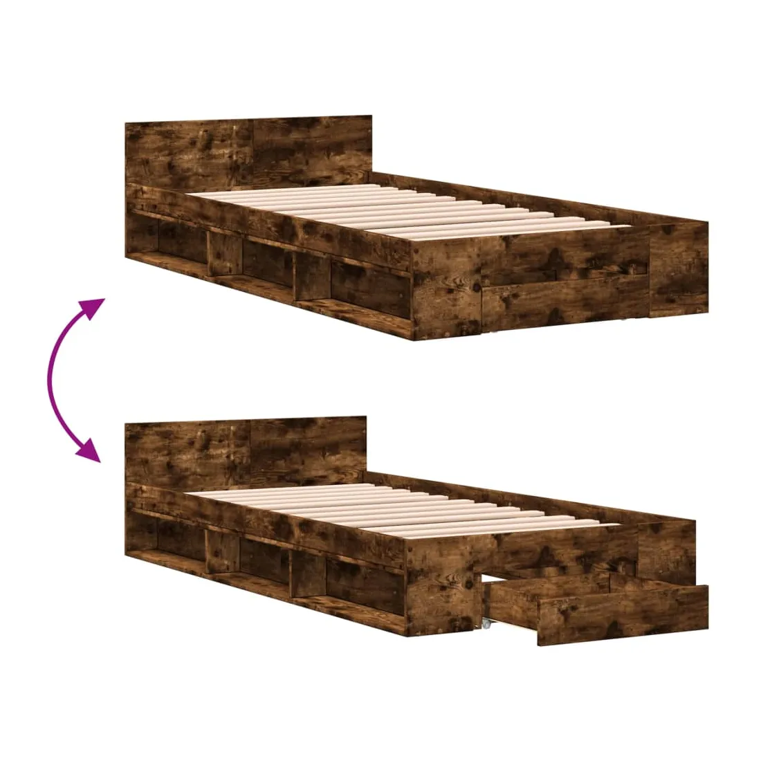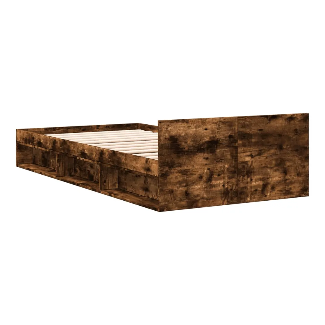 Ajoutez une touche moderne à votre chambre à coucher avec ce cadre de lit avec tiroir ! Il apportera une touche pratique et décorative à votre espace de vie. Matériau durable : le cadre de lit est fabriquée en bois d'ingénierie. Le bois d'ingénierie est d'une qualité exceptionnelle avec une surface lisse et présente également de la résistance, de la stabilité et de la résistance à l'humidité.Lattes robustes : les lattes de contreplaqué assurent une bonne répartition du poids, garantissant que le matelas reste en place à chaque torsion de votre corps pendant le sommeil.Fonction de rangement : le tiroir de lit et les compartiments latéraux inclus offrent suffisamment d'espace de rangement pour ranger vos articles essentiels, gardant votre pièce propre et bien rangée. Bon à savoir :Un matelas n'est pas inclus avec ce lit. Nous offrons une sélection variée de matelas. Vous pouvez consulter notre boutique pour trouver un matelas assorti.