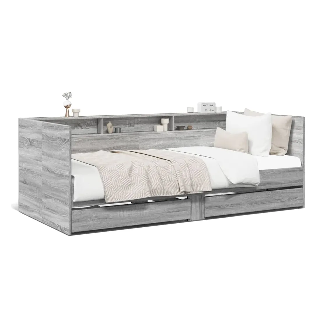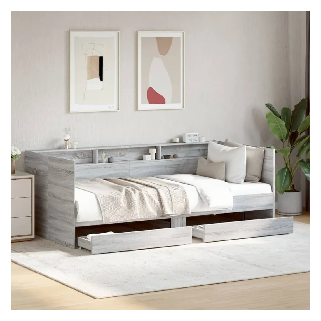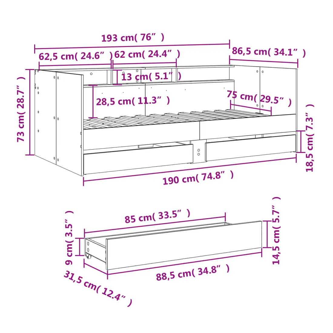 Ce lit de repos 2 en 1 avec tiroirs, servant à la fois de canapé et de lit, constitue un ajout pratique et accrocheur à votre salon ou chambre à coucher. Lit de repos polyvalent : le canapé-lit fonctionne comme un canapé pendant la journée et comme un lit pendant la nuit, offrant une solution pratique pour accueillir des invités. Grand espace de rangement : ce lit d'appoint dispose de 2 tiroirs à roulettes qui offrent suffisamment d'espace pour ranger vos vêtements, chaussettes, jouets, coussins, etc.Construction solide : ce canapé-lit est doté d'un cadre robuste en bois d'ingénierie. Le bois d'ingénierie est d'une qualité exceptionnelle avec une surface lisse et se caractérise par sa solidité, sa stabilité et sa résistance à l'humidité. Bon à savoir :La livraison comprend uniquement un cadre de lit de jour. Le matelas n'est pas inclus. Vous pouvez consulter notre boutique pour trouver les matelas assortis.