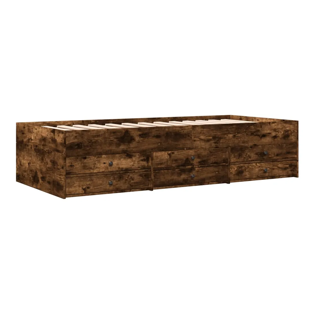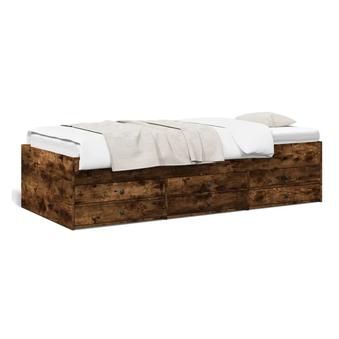 Ce lit de repos 2 en 1 avec tiroirs, servant à la fois de canapé et de lit, constitue un ajout pratique et accrocheur à votre salon ou chambre à coucher. Méridienne polyvalente : Le canapé-lit fait office de canapé le jour ou de lit la nuit, ce qui constitue une solution pratique pour accueillir des invités et optimiser l'espace. Grand espace de rangement : ce lit d'appoint dispose de 6 tiroirs à roulettes qui offrent suffisamment d'espace pour ranger vos vêtements, chaussettes, jouets, coussins, etc.Construction solide : ce canapé-lit est doté d'un cadre robuste en bois d'ingénierie. Le bois d'ingénierie est d'une qualité exceptionnelle avec une surface lisse et se caractérise par sa solidité, sa stabilité et sa résistance à l'humidité. Bon à savoir :La livraison comprend uniquement un cadre de lit de jour. Le matelas n'est pas inclus. Vous pouvez consulter notre boutique pour trouver les matelas assortis.