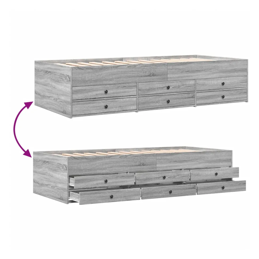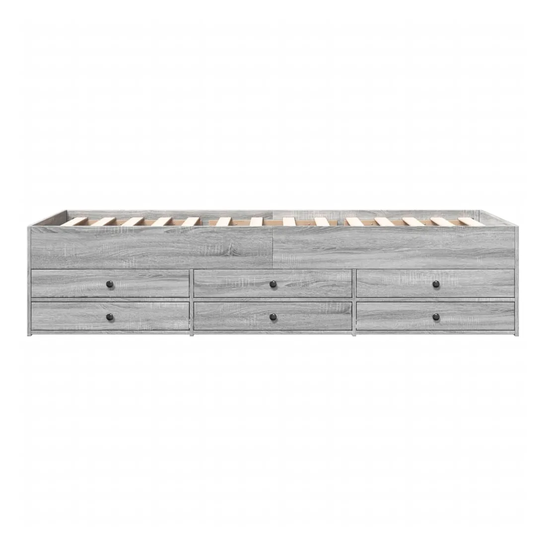 Ce lit de repos 2 en 1 avec tiroirs, servant à la fois de canapé et de lit, constitue un ajout pratique et accrocheur à votre salon ou chambre à coucher. Méridienne polyvalente : Le canapé-lit fait office de canapé le jour ou de lit la nuit, ce qui constitue une solution pratique pour accueillir des invités et optimiser l'espace. Grand espace de rangement : ce lit d'appoint dispose de 6 tiroirs à roulettes qui offrent suffisamment d'espace pour ranger vos vêtements, chaussettes, jouets, coussins, etc.Construction solide : ce canapé-lit est doté d'un cadre robuste en bois d'ingénierie. Le bois d'ingénierie est d'une qualité exceptionnelle avec une surface lisse et se caractérise par sa solidité, sa stabilité et sa résistance à l'humidité. Bon à savoir :La livraison comprend uniquement un cadre de lit de jour. Le matelas n'est pas inclus. Vous pouvez consulter notre boutique pour trouver les matelas assortis.