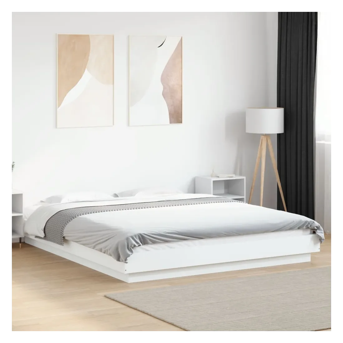 Obtenez une meilleure nuit de sommeil reposante grâce à ce cadre de lit avec lumières LED ! Il est un supplément accueillant à toute chambre à coucher. Matériau durable : le bois d'ingénierie est d'une qualité exceptionnelle avec une surface lisse et présente également résistance, stabilité et résistance à l'humidité. Lumières LED RVB : le cadre de lit est équipé de lumières LED RVB vibrantes. Avec divers menus personnalisables, vous pouvez changer sans effort la couleur des lumières et même les régler automatiquement. Ces lumières LED renforcent non seulement l'aspect contemporain du sommier, mais ajoutent également à son attrait tendance. Lattes robustes : les lattes de contreplaqué assurent une bonne répartition du poids, garantissant que le matelas reste en place à chaque torsion de votre corps pendant le sommeil. Bon à savoir :Un matelas n'est pas inclus avec ce lit. Nous offrons une sélection variée de matelas. Vous pouvez consulter notre boutique pour trouver un matelas assorti. Ce produit est doté d'un connecteur USB qui nécessite une source d'alimentation USB de 5V certifiée (non incluse).