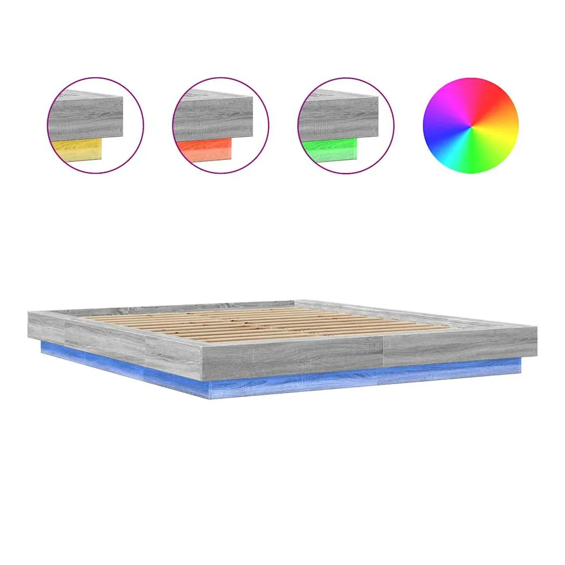 Obtenez une meilleure nuit de sommeil reposante grâce à ce cadre de lit avec lumières LED ! Il est un supplément accueillant à toute chambre à coucher. Matériau durable : le bois d'ingénierie est d'une qualité exceptionnelle avec une surface lisse et présente également résistance, stabilité et résistance à l'humidité. Lumières LED RVB : le cadre de lit est équipé de lumières LED RVB vibrantes. Avec divers menus personnalisables, vous pouvez changer sans effort la couleur des lumières et même les régler automatiquement. Ces lumières LED renforcent non seulement l'aspect contemporain du sommier, mais ajoutent également à son attrait tendance. Lattes robustes : les lattes de contreplaqué assurent une bonne répartition du poids, garantissant que le matelas reste en place à chaque torsion de votre corps pendant le sommeil. Bon à savoir :Un matelas n'est pas inclus avec ce lit. Nous offrons une sélection variée de matelas. Vous pouvez consulter notre boutique pour trouver un matelas assorti. Ce produit est doté d'un connecteur USB qui nécessite une source d'alimentation USB de 5V certifiée (non incluse).