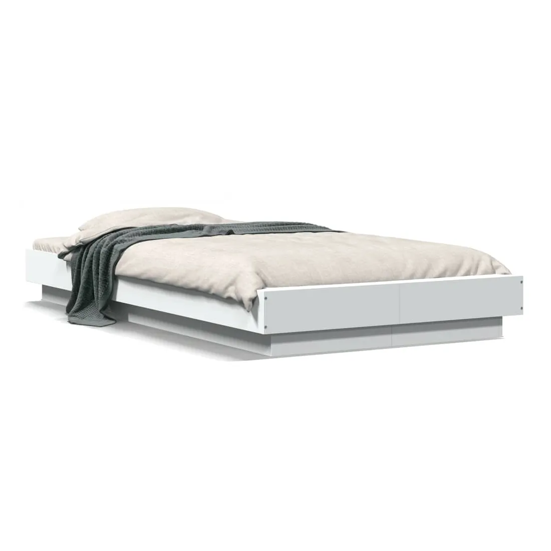 Obtenez une meilleure nuit de sommeil reposante grâce à ce cadre de lit avec lumières LED ! Il est un supplément accueillant à toute chambre à coucher. Matériau durable : le bois d'ingénierie est d'une qualité exceptionnelle avec une surface lisse et présente également résistance, stabilité et résistance à l'humidité. Lumières LED RVB : le cadre de lit est équipé de lumières LED RVB vibrantes. Avec divers menus personnalisables, vous pouvez changer sans effort la couleur des lumières et même les régler automatiquement. Ces lumières LED renforcent non seulement l'aspect contemporain du sommier, mais ajoutent également à son attrait tendance. Lattes robustes : les lattes de contreplaqué assurent une bonne répartition du poids, garantissant que le matelas reste en place à chaque torsion de votre corps pendant le sommeil. Bon à savoir :Un matelas n'est pas inclus avec ce lit. Nous offrons une sélection variée de matelas. Vous pouvez consulter notre boutique pour trouver un matelas assorti. Ce produit est doté d'un connecteur USB qui nécessite une source d'alimentation USB de 5V certifiée (non incluse).