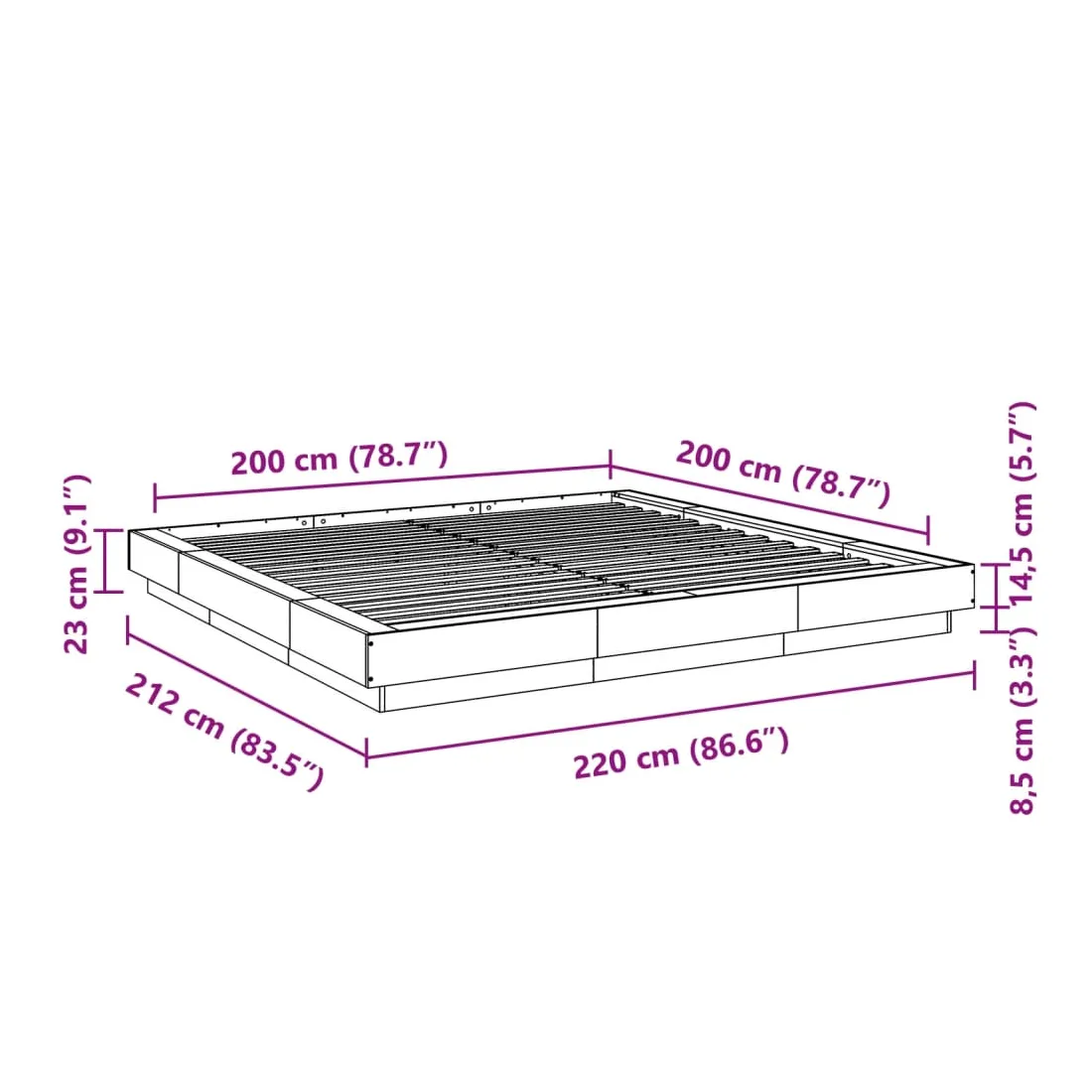 - Dimensions du matelas correspondant : 200 x 200 cm (l x L) (matelas non inclus)