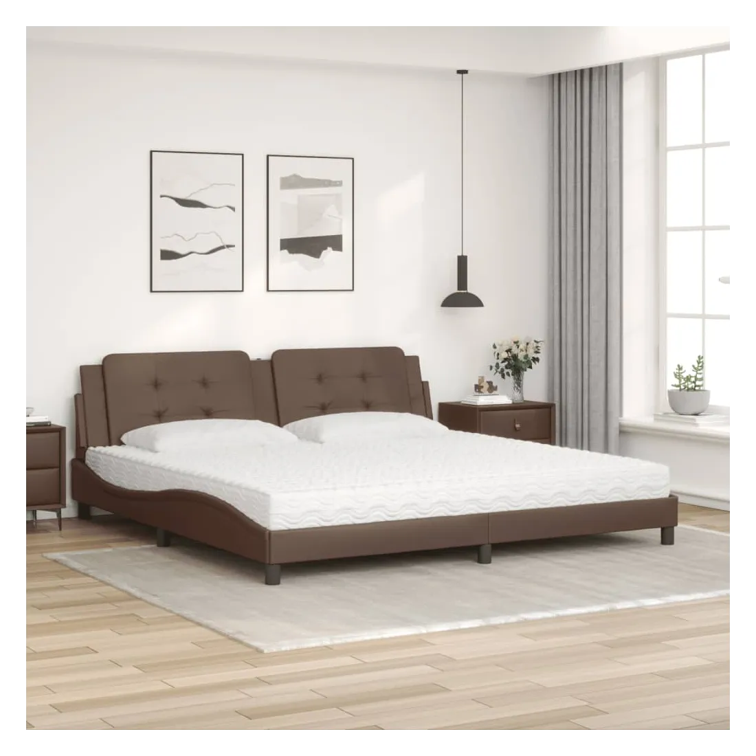 Lit avec matelas Zadar marron 200x200 cm similicuir