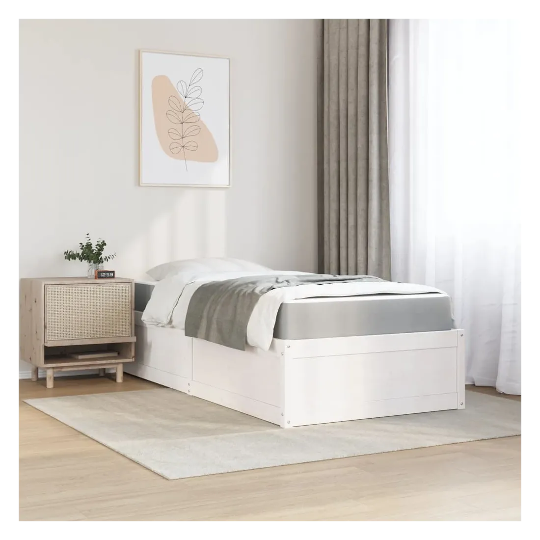Avec un design simple mais intemporel, ce lit sera un supplément vraiment pratique et décoratif à votre chambre à coucher. Bois de pin massif : le bois de pin massif est un matériau naturel magnifique. Le bois de pin a un grain droit et les nœuds donnent au matériau son aspect caractéristique et rustique.Tissu durable : le tissu présente un aspect simple et épuré, et il est respirant et durable.Matelas à ressorts ensachés : ce matelas à ressorts ensachés comporte des ressorts ensachés individuels qui fonctionnent indépendamment pour offrir un soutien personnalisé en réagissant uniquement à la pression exercée dans chaque zone. Cette conception empêche « l'enroulement » et réduit le transfert de mouvement par rapport aux matelas traditionnels à ressorts ouverts. Chaque ressort ensaché soutient le corps individuellement.Lattes pour un soutien optimal : le cadre de lit est complété par des lattes pour offrir un soutien et une respirabilité essentiels à votre matelas. Bon à savoir :Pour des raisons d'hygiène, le matelas ne peut pas être retourné si l'emballage est retiré ou ouvert.