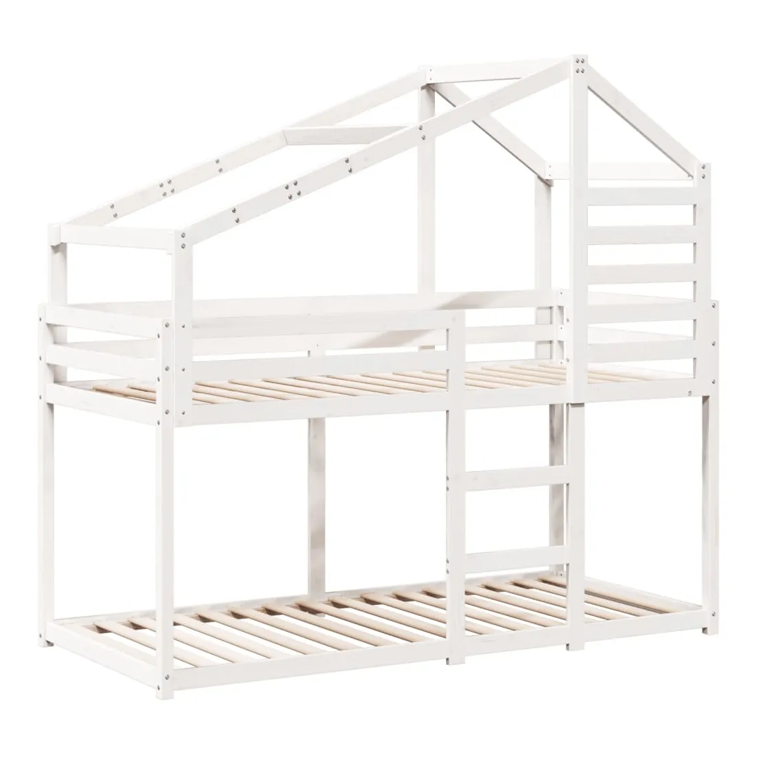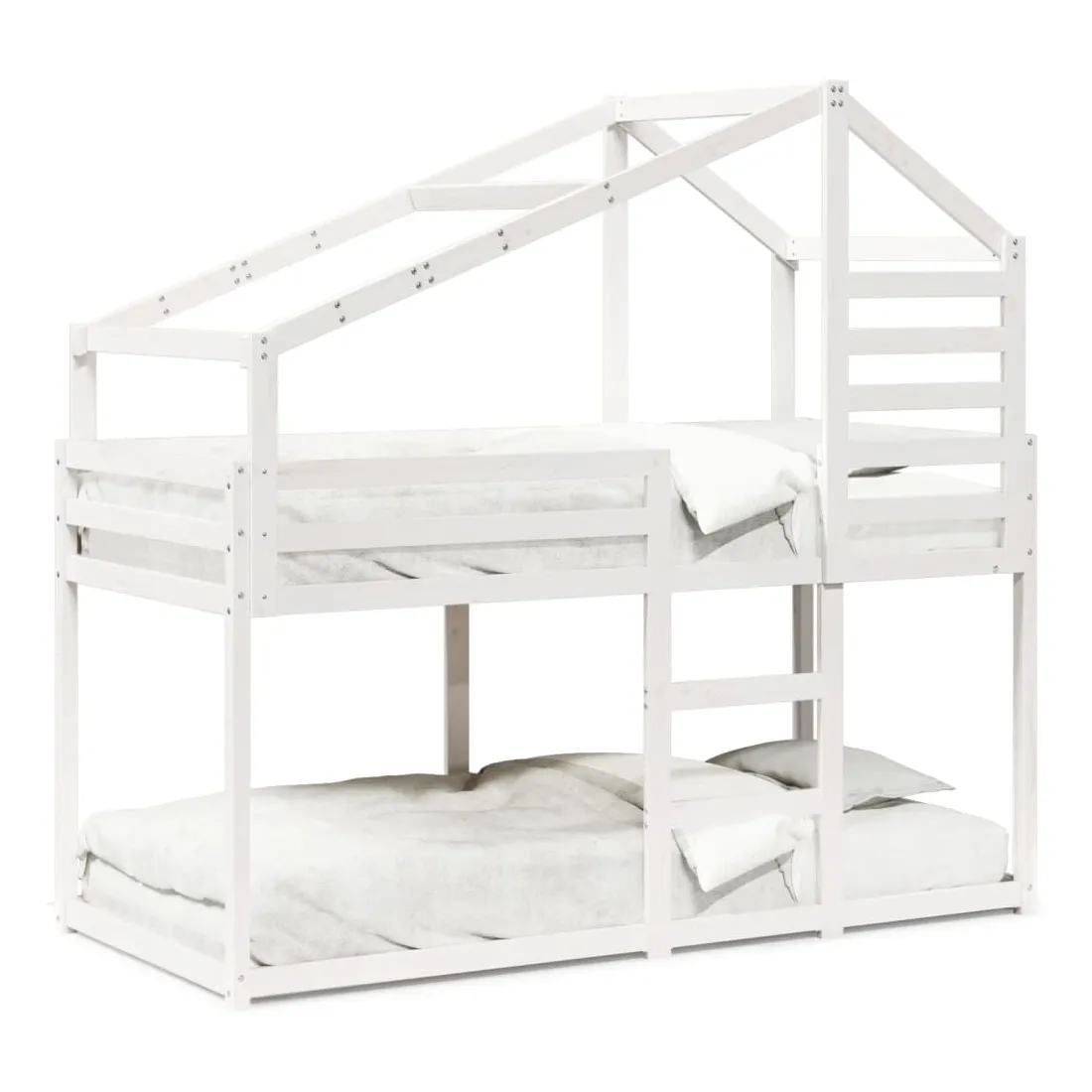 Ce lit superposé pour enfants avec toit est élégant et fonctionnel, ce qui en fait un ajout parfait à toute pièce avec un espace limité. Bois de pin massif : le bois de pin massif est un matériau naturel magnifique. Le bois de pin a un grain droit et les nœuds donnent au matériau son aspect caractéristique et rustique.Design sûr : le lit surélevé est conçu dans un souci de sécurité. Il comprend des garde-corps qui empêchent l'utilisateur de rouler pendant son sommeil.Très amusant : en combinant le toit avec le lit de votre enfant, vous pouvez créer une cachette qui permettra à votre enfant de s'amuser à l'heure du coucher. Cette addition innovante non seulement sera un point focal passionnant, mais aussi apportera de la fantaisie et de l'amusement dans la chambre d'enfant.Convient aux espaces limités : le cadre de lit est un excellent choix pour toute pièce dont l'espace est limité, il fournit deux lits individuels avec un design compact.Porte latérale ouverte : le toit est doté d'une porte latérale ouverte qui permet à vos enfants d'entrer et de sortir facilement du lit. Bon à savoir :Un matelas n'est pas inclus avec ce lit. Nous offrons une sélection variée de matelas. Vous pouvez consulter notre boutique pour trouver un matelas assorti.