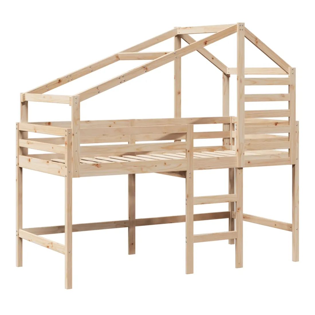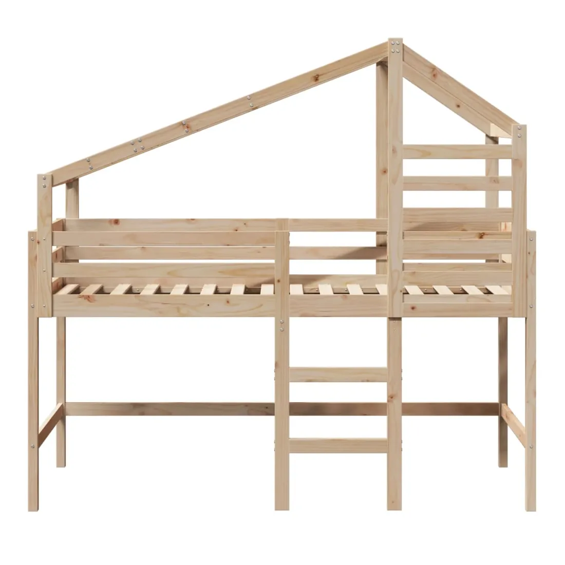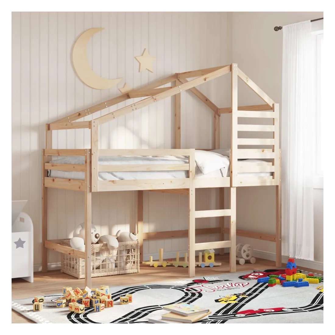 Ce lit mezzanine pour enfants a été fabriqué en pin massif et est conçu pour recevoir et optimiser l'espace. Bois de pin massif : le bois de pin massif est un matériau naturel magnifique. Le bois de pin a un grain droit et les nœuds donnent au matériau son aspect caractéristique et rustique.Utilisation complète de l'espace : ce lit mezzanine simple est surélevé de 78,5 cm au-dessus du sol, offrant suffisamment d'espace en dessous pour le rangement ou d'autres activités. Cet espace peut être utilisé pour empiler des boîtes de rangement, ranger de gros jouets ou même placer un canapé pour enfants pour lire. De plus, votre enfant peut utiliser l'espace sous le cadre de lit en bois comme base secrète et profiter de jeux imaginatifs.Barrières de sécurité : le lit mezzanine pour enfants est équipé de garde-corps de sécurité sur les 4 côtés, afin que votre enfant puisse dormir sans craindre de tomber.Échelle pratique : ce lit mezzanine pour enfants est doté d'une échelle qui permet de monter et de descendre dans et du lit en toute simplicité. Elle apporte également de la joie et transforme leur chambre en terrain de jeu intérieur.Porte latérale ouverte : le toit est doté d'une porte latérale ouverte qui permet à vos enfants d'entrer et de sortir facilement du lit. Bon à savoir :Un matelas n'est pas inclus avec ce lit. Nous offrons une sélection variée de matelas. Vous pouvez consulter notre boutique pour trouver un matelas assorti. Attention :Pour éviter qu'il ne bascule, ce produit doit être utilisé avec le dispositif de fixation murale fourni.
