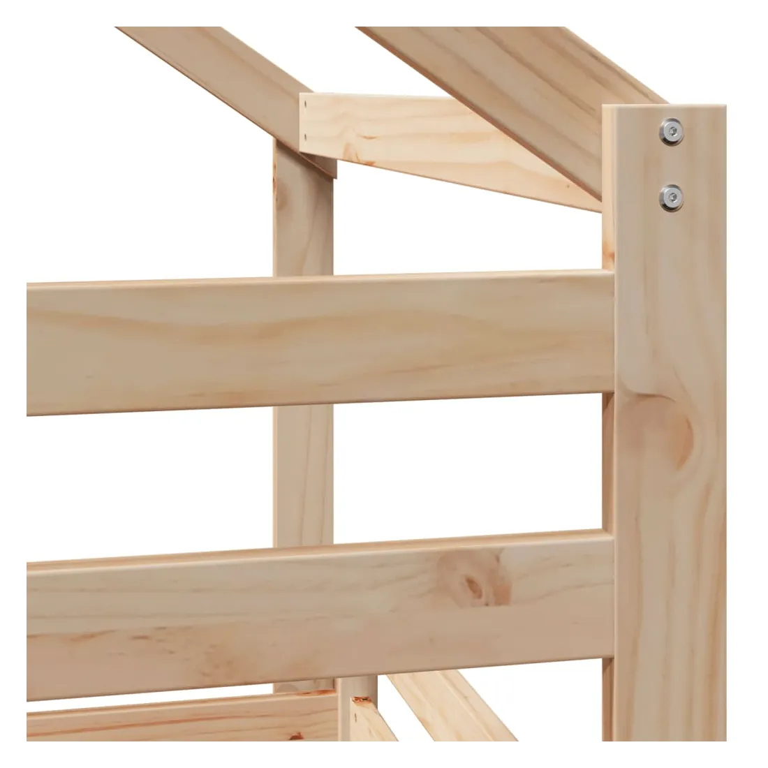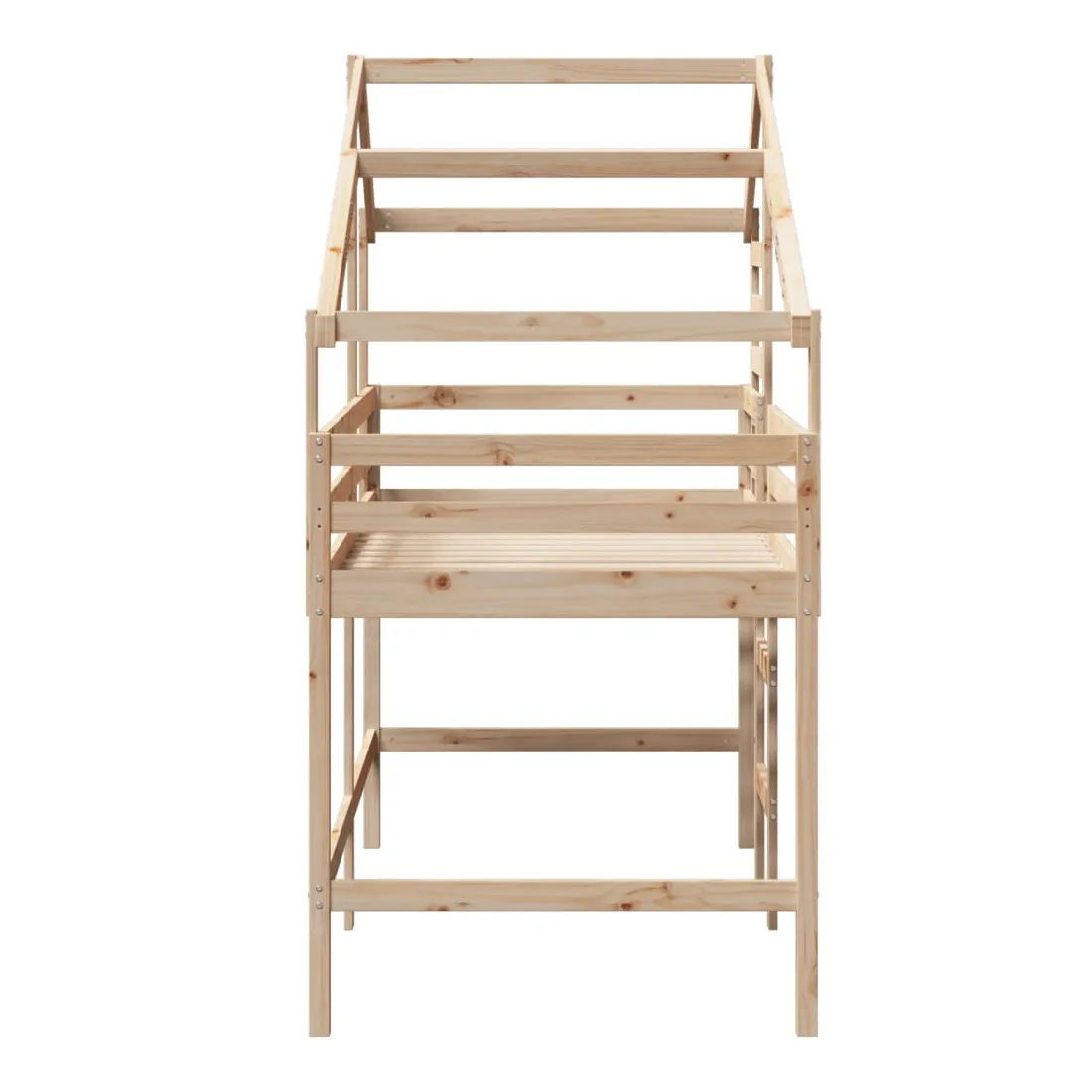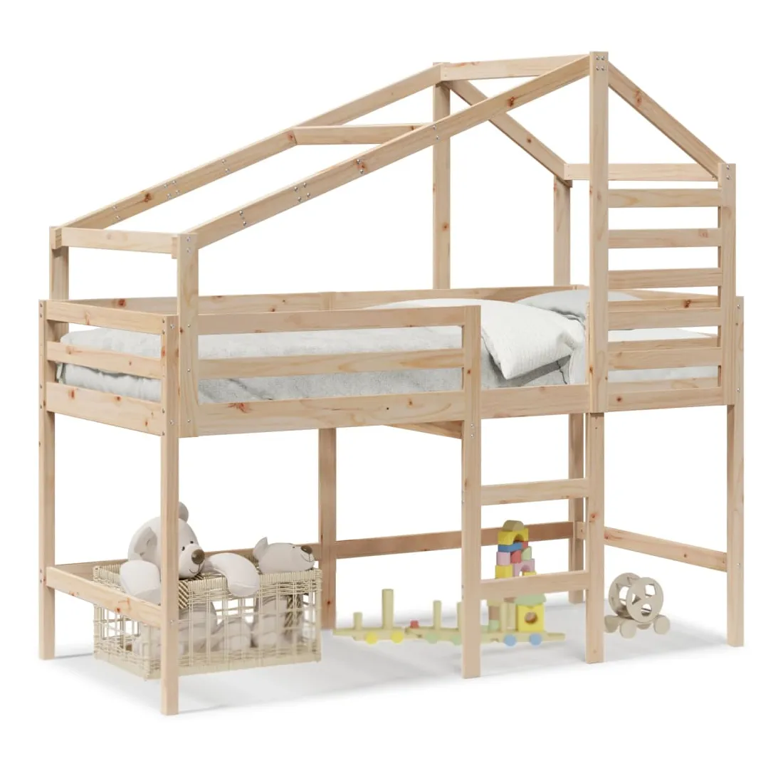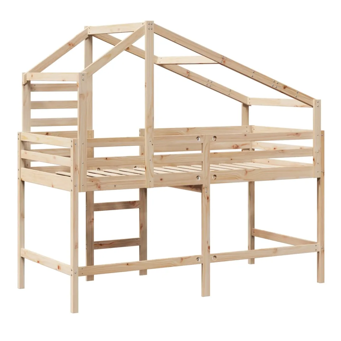 Ce lit mezzanine pour enfants a été fabriqué en pin massif et est conçu pour recevoir et optimiser l'espace. Bois de pin massif : le bois de pin massif est un matériau naturel magnifique. Le bois de pin a un grain droit et les nœuds donnent au matériau son aspect caractéristique et rustique.Utilisation complète de l'espace : ce lit mezzanine simple est surélevé de 78,5 cm au-dessus du sol, offrant suffisamment d'espace en dessous pour le rangement ou d'autres activités. Cet espace peut être utilisé pour empiler des boîtes de rangement, ranger de gros jouets ou même placer un canapé pour enfants pour lire. De plus, votre enfant peut utiliser l'espace sous le cadre de lit en bois comme base secrète et profiter de jeux imaginatifs.Barrières de sécurité : le lit mezzanine pour enfants est équipé de garde-corps de sécurité sur les 4 côtés, afin que votre enfant puisse dormir sans craindre de tomber.Échelle pratique : ce lit mezzanine pour enfants est doté d'une échelle qui permet de monter et de descendre dans et du lit en toute simplicité. Elle apporte également de la joie et transforme leur chambre en terrain de jeu intérieur.Porte latérale ouverte : le toit est doté d'une porte latérale ouverte qui permet à vos enfants d'entrer et de sortir facilement du lit. Bon à savoir :Un matelas n'est pas inclus avec ce lit. Nous offrons une sélection variée de matelas. Vous pouvez consulter notre boutique pour trouver un matelas assorti. Attention :Pour éviter qu'il ne bascule, ce produit doit être utilisé avec le dispositif de fixation murale fourni.