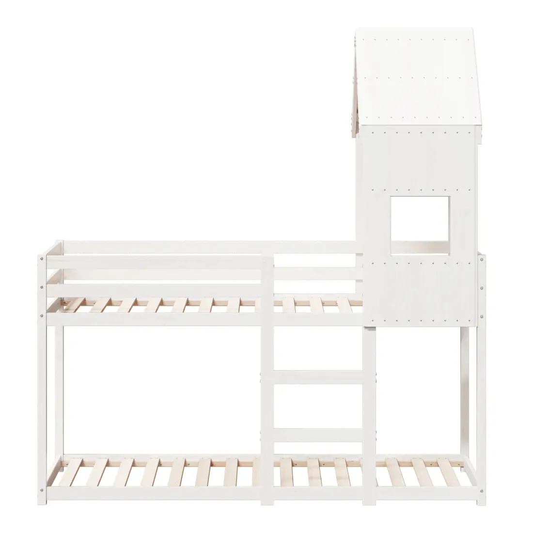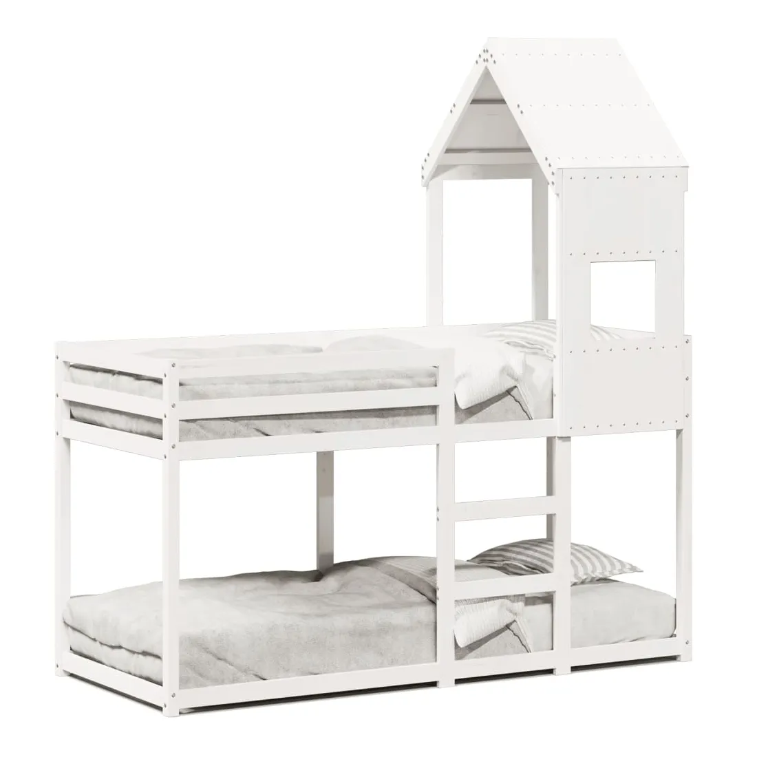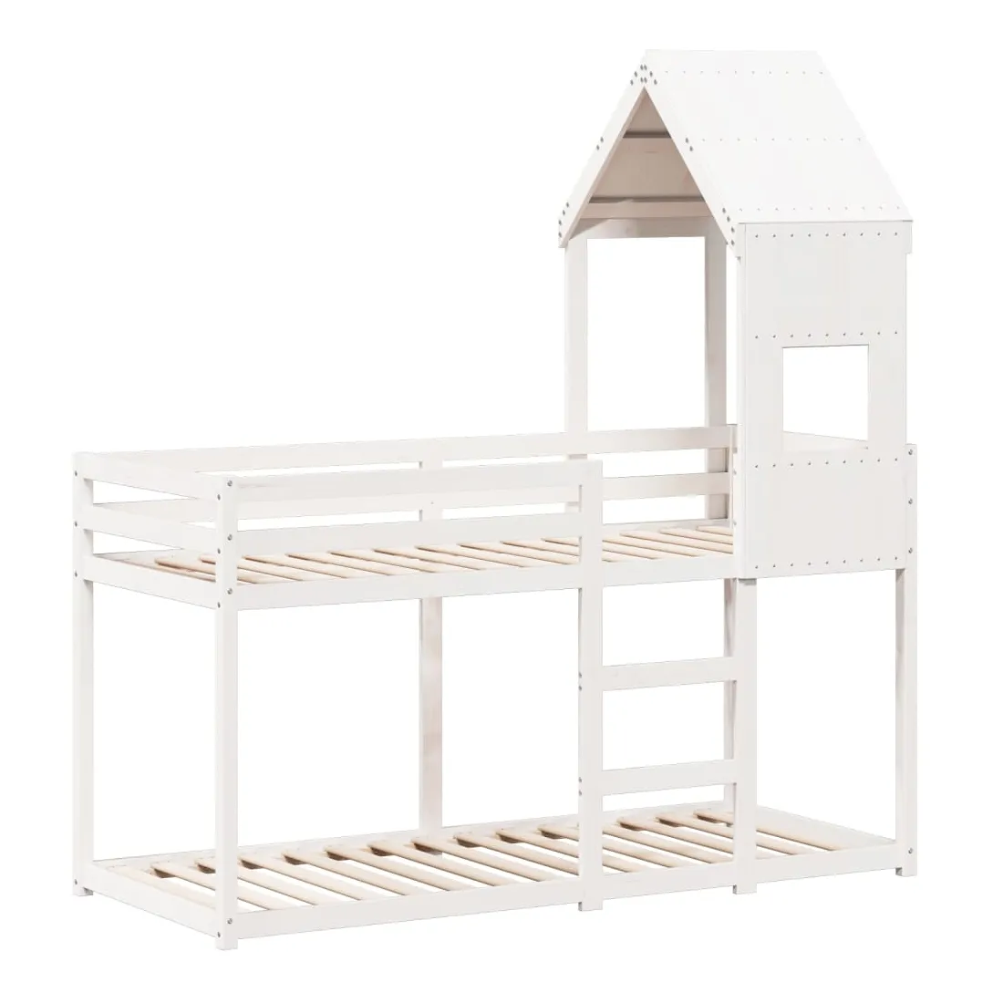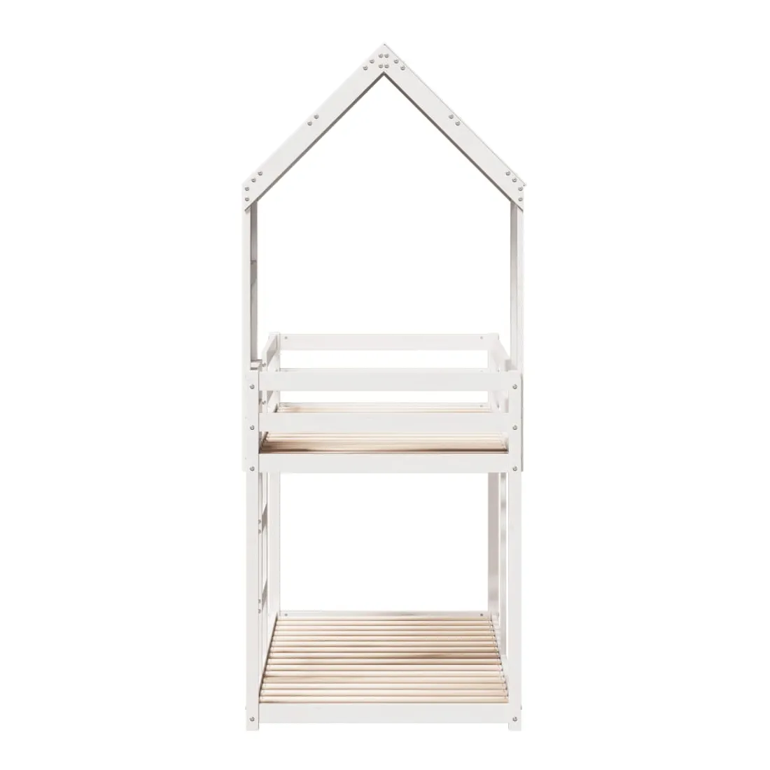 Ce lit superposé pour enfants avec toit est élégant et fonctionnel, ce qui en fait un ajout parfait à toute pièce avec un espace limité. Bois de pin massif : le bois de pin massif est un matériau naturel magnifique. Le bois de pin a un grain droit et les nœuds donnent au matériau son aspect caractéristique et rustique.Design sûr : le lit surélevé est conçu dans un souci de sécurité. Il comprend des garde-corps qui empêchent l'utilisateur de rouler pendant son sommeil.Lattes de contreplaqué : les lattes de contreplaqué assurent une bonne répartition du poids, garantissant que le matelas reste en place à chaque torsion de votre corps pendant le sommeil.Très amusant : en combinant le toit avec le lit de votre enfant, vous pouvez créer une cachette qui permettra à votre enfant de s'amuser à l'heure du coucher. Cette addition innovante non seulement sera un point focal passionnant, mais aussi apportera de la fantaisie et de l'amusement dans la chambre d'enfant.Convient aux espaces limités : le cadre de lit est un excellent choix pour toute pièce dont l'espace est limité, il fournit deux lits individuels avec un design compact.Porte latérale ouverte : le toit est doté d'une porte latérale ouverte qui permet à vos enfants d'entrer et de sortir facilement du lit. Bon à savoir :Un matelas n'est pas inclus avec ce lit. Nous offrons une sélection variée de matelas. Vous pouvez consulter notre boutique pour trouver un matelas assorti.