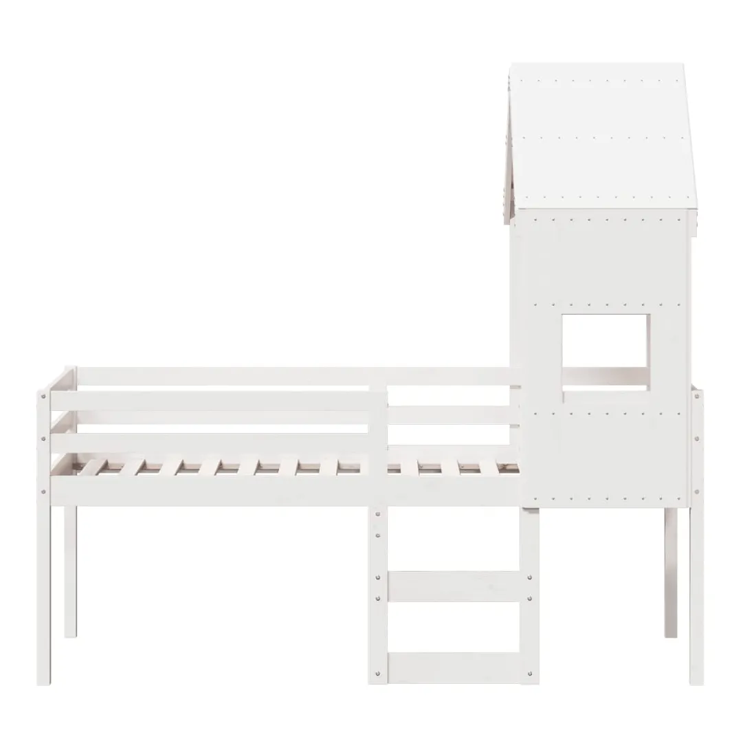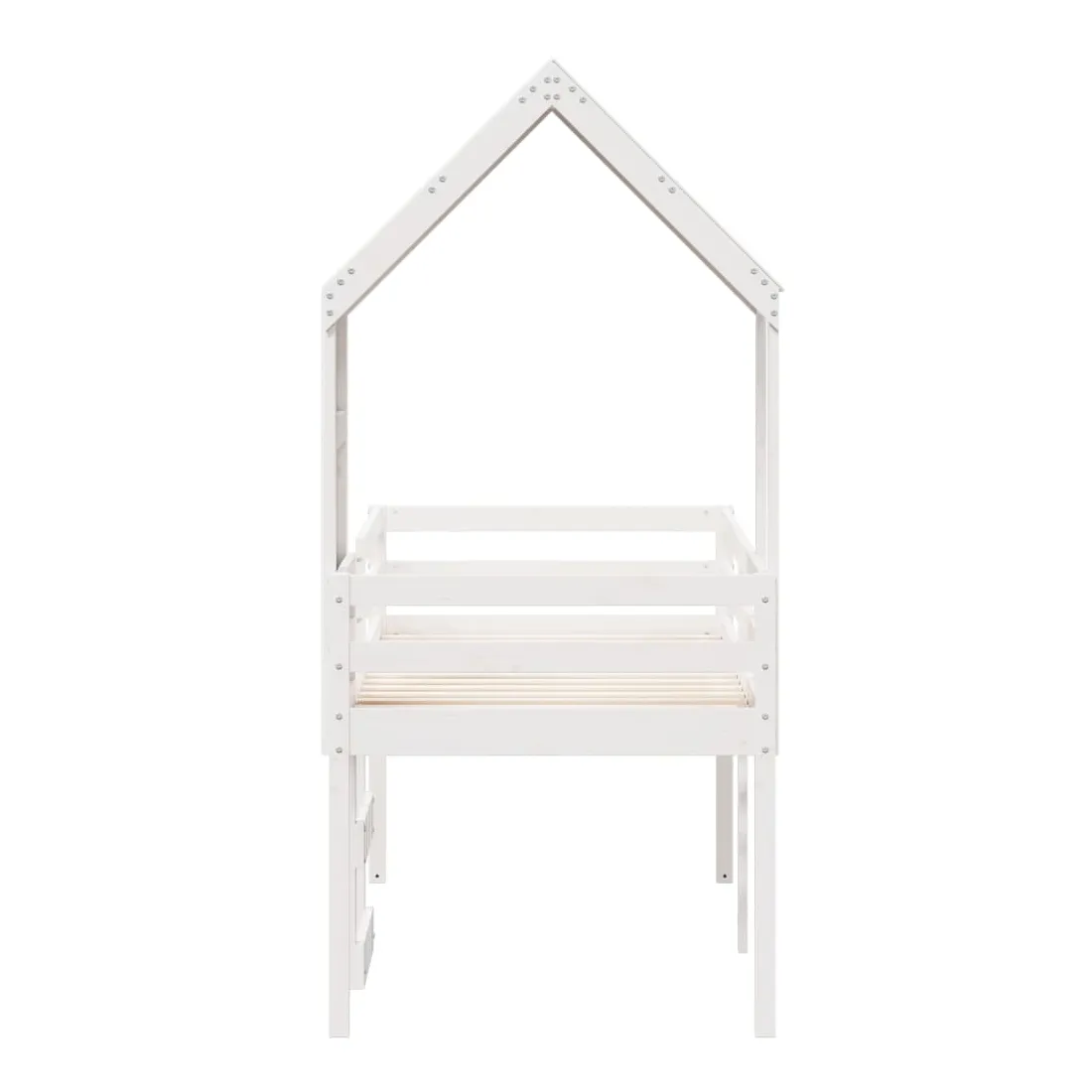 Ce lit haut, dont la polyvalence est au cœur de son design, est une combinaison parfaite de style moderne et élégant et de praticité. Il est idéal pour les petites pièces. Bois de pin massif : le bois de pin massif est un matériau naturel magnifique. Le bois de pin a un grain droit et les nœuds donnent au matériau son aspect caractéristique et rustique.Fonction pratique : le lit surélevé offre un excellent moyen d'utiliser l'espace au sol dans la chambre de votre enfant, vous pouvez le combiner avec un rideau de jeu cool, un matelas de jeu et un panneau d'abri comme un coin de jeu ou utiliser la zone en dessous pour le stockage. Les lattes en contreplaqué offrent un soutien supplémentaire à votre lit. Elles prolongent la durée de vie de votre matelas en absorbant la majeure partie de la tension et du poids du lit.Design sûr : l'échelle intégrée du lit surélevé facilite l'entrée et la sortie du lit, et les garde-corps garantissent la sécurité de vos jeunes pendant qu'ils dorment.Très amusant : en combinant le toit avec le lit de votre enfant, vous pouvez créer une cachette qui permettra à votre enfant de s'amuser à l'heure du coucher. Cette addition innovante non seulement sera un point focal passionnant, mais aussi apportera de la fantaisie et de l'amusement dans la chambre d'enfant.Porte latérale ouverte : le toit est doté d'une porte latérale ouverte qui permet à vos enfants d'entrer et de sortir facilement du lit. Bon à savoir :Un matelas n'est pas inclus avec ce lit. Nous offrons une sélection variée de matelas. Vous pouvez consulter notre boutique pour trouver un matelas assorti.