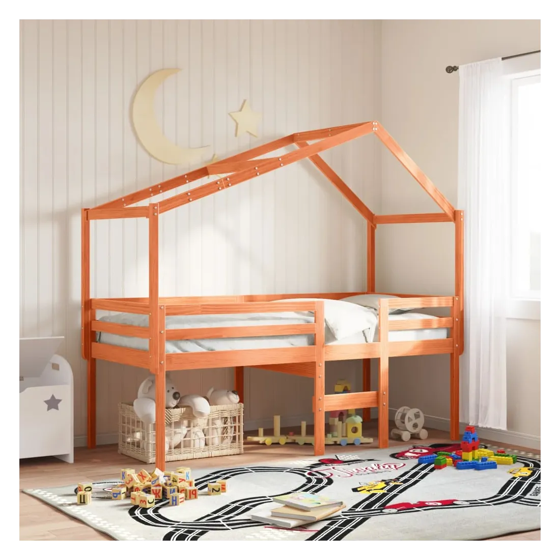 Ce lit haut, dont la polyvalence est au cœur de son design, est une combinaison parfaite de style moderne et élégant et de praticité. Il est idéal pour les petites pièces. Bois de pin massif : le bois de pin massif est un matériau naturel magnifique. Le bois de pin a un grain droit et les nœuds donnent au matériau son aspect caractéristique et rustique.Fonction pratique : le lit surélevé offre un excellent moyen d'utiliser l'espace au sol dans la chambre de votre enfant, vous pouvez le combiner avec un rideau de jeu cool, un matelas de jeu et un panneau d'abri comme un coin de jeu ou utiliser la zone en dessous pour le stockage. Les lattes en contreplaqué offrent un soutien supplémentaire à votre lit. Elles prolongent la durée de vie de votre matelas en absorbant la majeure partie de la tension et du poids du lit.Design sûr : l'échelle intégrée du lit surélevé facilite l'entrée et la sortie du lit, et les garde-corps garantissent la sécurité de vos jeunes pendant qu'ils dorment.Très amusant : en combinant le toit avec le lit de votre enfant, vous pouvez créer une cachette qui permettra à votre enfant de s'amuser à l'heure du coucher. Cette addition innovante non seulement sera un point focal passionnant, mais aussi apportera de la fantaisie et de l'amusement dans la chambre d'enfant.Porte latérale ouverte : le toit est doté d'une porte latérale ouverte qui permet à vos enfants d'entrer et de sortir facilement du lit. Bon à savoir :Un matelas n'est pas inclus avec ce lit. Nous offrons une sélection variée de matelas. Vous pouvez consulter notre boutique pour trouver un matelas assorti.