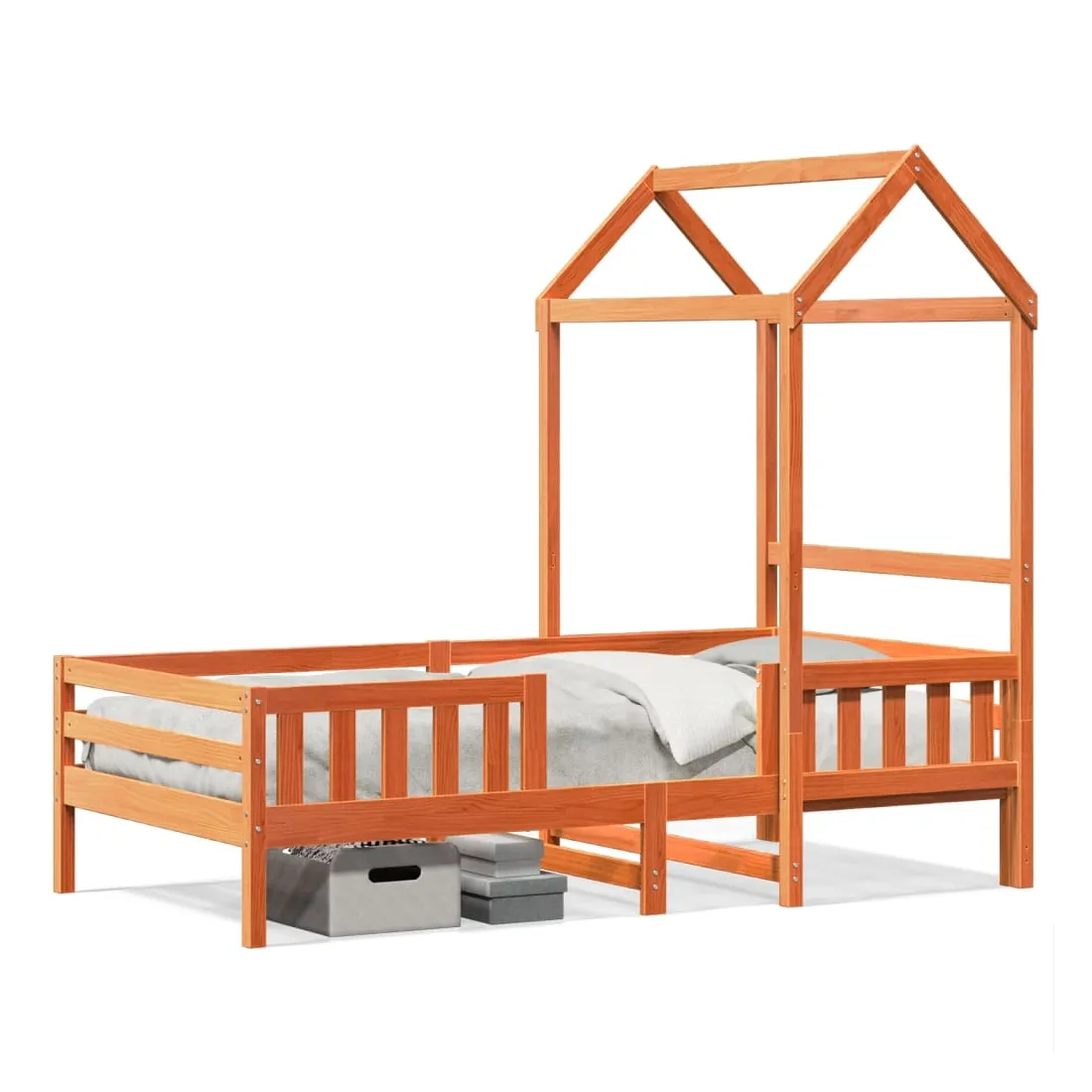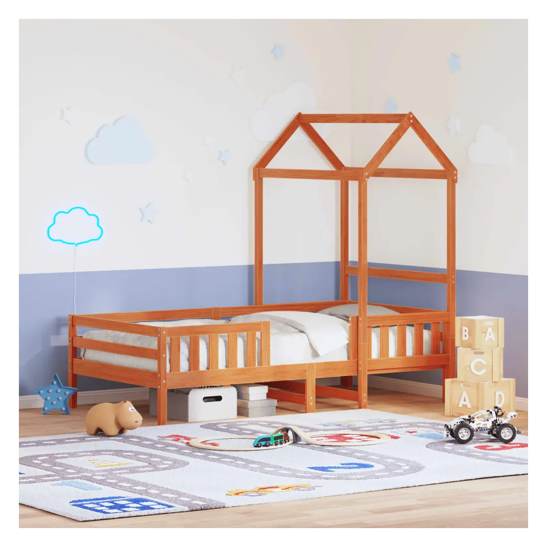 Ajoutez une touche moderne à votre chambre à coucher avec ce cadre de lit ! Il apportera une touche pratique et décorative à votre espace de vie. Bois de pin massif : le bois de pin massif est un matériau naturel magnifique. Le bois de pin a un grain droit et les nœuds donnent au matériau son aspect caractéristique et rustique.Lattes de contreplaqué : les lattes de contreplaqué assurent une bonne répartition du poids, garantissant que le matelas reste en place à chaque torsion de votre corps pendant le sommeil.Très amusant : en combinant le toit avec le lit de votre enfant, vous pouvez créer une cachette qui permettra à votre enfant de s'amuser à l'heure du coucher. Cette addition innovante non seulement sera un point focal passionnant, mais aussi apportera de la fantaisie et de l'amusement dans la chambre d'enfant.Porte latérale ouverte : le toit est doté d'une porte latérale ouverte qui permet à vos enfants d'entrer et de sortir facilement du lit.Design moderne : ajoutez un style moderne à votre décor intérieur existant ! Le design moderne présente des lignes épurées, des looks minimalistes et de la lumière naturelle dans le cadre du style de design d'intérieur. Bon à savoir :Un matelas n'est pas inclus avec ce lit. Nous offrons une sélection variée de matelas. Vous pouvez consulter notre boutique pour trouver un matelas assorti.