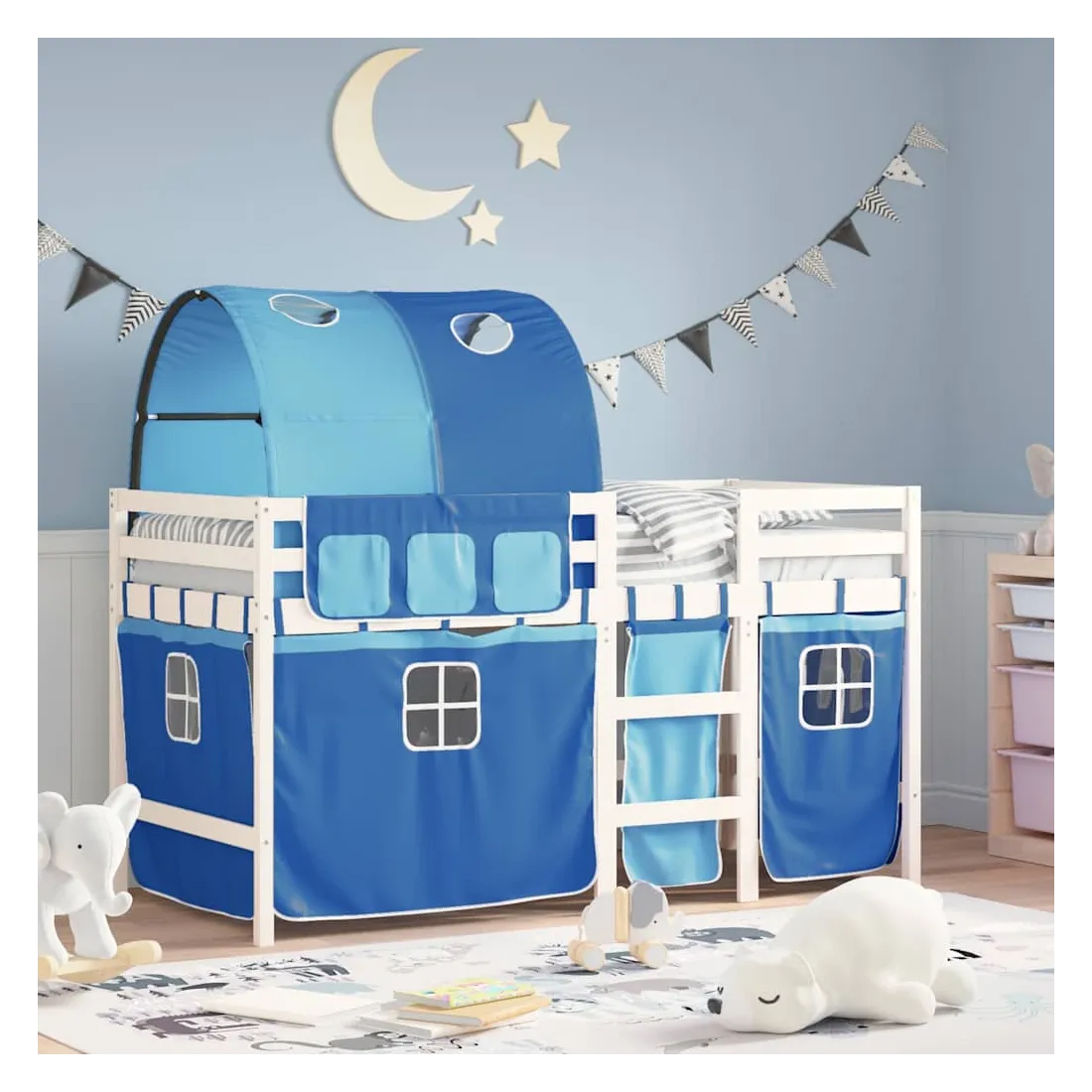 Ce lit mezzanine pour enfants a été fabriqué en pin massif et est conçu pour recevoir et optimiser l'espace. Construction en bois stable : ce lit intermédiaire est fabriqué en bois de pin massif pour plus de stabilité et de durabilité. Le bois de pin a un grain droit et les nœuds donnent au matériau son aspect rustique caractéristique.Utilisation complète de l'espace : ce lit mezzanine simple est surélevé de 78,5 cm au-dessus du sol, offrant suffisamment d'espace en dessous pour le rangement ou d'autres activités. Cet espace peut être utilisé pour empiler des boîtes de rangement, ranger de gros jouets ou même placer un canapé pour enfants pour lire. De plus, votre enfant peut utiliser l'espace sous le cadre de lit en bois comme base secrète et profiter de jeux imaginatifs.Barrières de sécurité : le lit mezzanine pour enfants est équipé de garde-corps de sécurité sur les 4 côtés, afin que votre enfant puisse dormir sans craindre de tomber.Échelle pratique : ce lit mezzanine pour enfants est doté d'une échelle qui permet de monter et de descendre dans et du lit en toute simplicité. Elle apporte également de la joie et transforme leur chambre en terrain de jeu intérieur. Bon à savoir :Un matelas n'est pas inclus avec ce lit. Nous offrons une sélection variée de matelas. Vous pouvez consulter notre boutique pour trouver un matelas assorti. Attention :Pour éviter qu'il ne bascule, ce produit doit être utilisé avec le dispositif de fixation murale fourni.