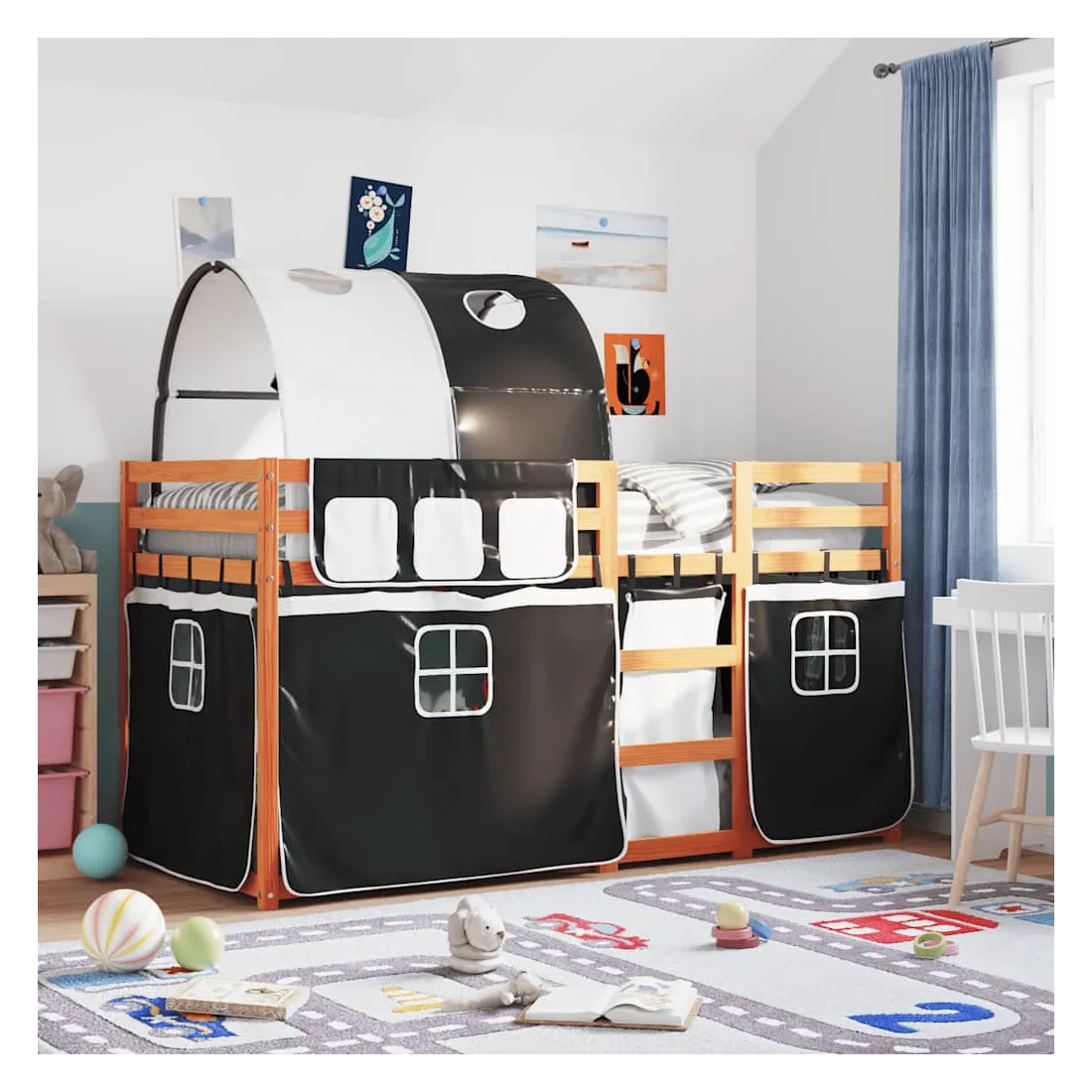 Ce lit superposé en bois est élégant et fonctionnel, ce qui en fait un supplément parfait à toute pièce dont l'espace est limité. Bois de pin massif : ce lit superposé est fabriqué en bois de pin massif pour plus de stabilité et de durabilité. Le bois de pin a un grain droit et les nœuds donnent au matériau son aspect rustique caractéristique.Très amusant : vous pouvez combiner les rideaux avec le lit superposé bas pour créer la base secrète de votre enfant, ce qui permet de s’amuser à l’heure du coucher et d’ajouter un point d'intérêt à la chambre à coucher !Barrières de sécurité : le lit supérieur est équipé de garde-corps de sécurité sur les 4 côtés, afin que votre enfant puisse dormir sans craindre de tomber.Échelle pratique : ce lit superposé double est doté d'une échelle qui permet de monter et de descendre dans et du lit en toute simplicité. Elle apporte également de la joie et transforme leur chambre en terrain de jeu intérieur. Bon à savoir :Un matelas n'est pas inclus avec ce lit. Nous offrons une sélection variée de matelas. Vous pouvez consulter notre boutique pour trouver un matelas assorti. Attention :Pour éviter qu'il ne bascule, ce produit doit être utilisé avec le dispositif de fixation murale fourni.