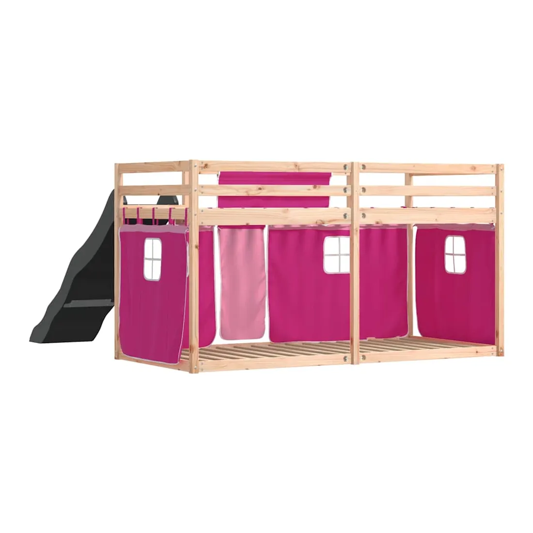Ce lit superposé en bois est élégant et fonctionnel, ce qui en fait un supplément parfait à toute pièce dont l'espace est limité. Bois de pin massif : ce lit superposé est fabriqué en bois de pin massif pour plus de stabilité et de durabilité. Le bois de pin a un grain droit et les nœuds donnent au matériau son aspect rustique caractéristique.Très amusant : vous pouvez combiner les rideaux avec le lit superposé bas pour créer la base secrète de votre enfant, ce qui permet de s’amuser à l’heure du coucher et d’ajouter un point d'intérêt à la chambre à coucher !Barrières de sécurité : le lit supérieur est équipé de garde-corps de sécurité sur les 4 côtés, afin que votre enfant puisse dormir sans craindre de tomber.Échelle et toboggan pratiques : ce lit superposé est doté d'un toboggan amusant qui apporte de la joie et transforme leur chambre en une aire de jeux intérieure. La combinaison d'une échelle d'escalade et d'un toboggan rend l'heure du coucher plus vivante et plus intéressante pour les enfants.Lattes robustes : les lattes de contreplaqué assurent une bonne répartition du poids, garantissant que le matelas reste en place à chaque torsion de votre corps pendant le sommeil. Bon à savoir :Un matelas n'est pas inclus avec ce lit. Nous offrons une sélection variée de matelas. Vous pouvez consulter notre boutique pour trouver un matelas assorti. Attention :Pour éviter qu'il ne bascule, ce produit doit être utilisé avec le dispositif de fixation murale fourni.