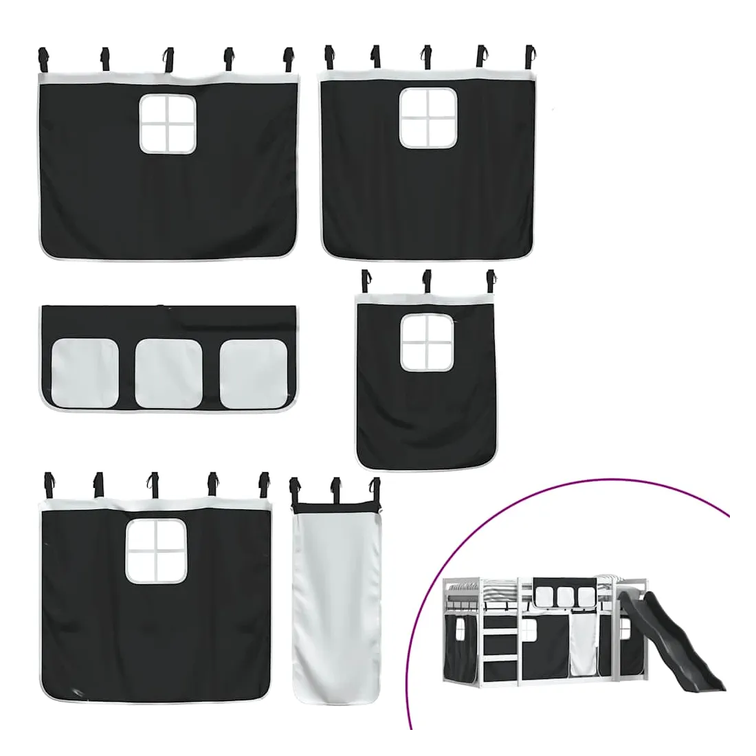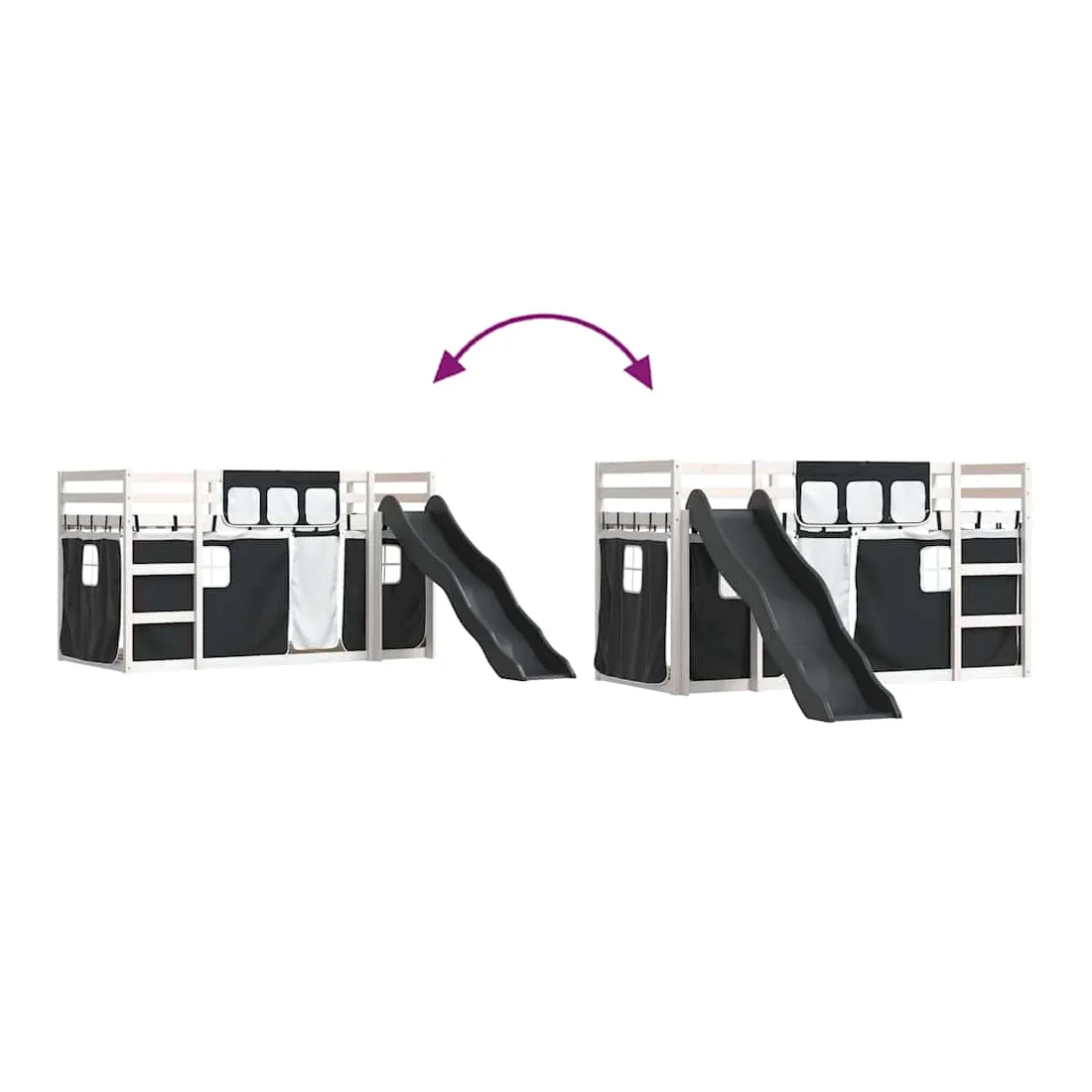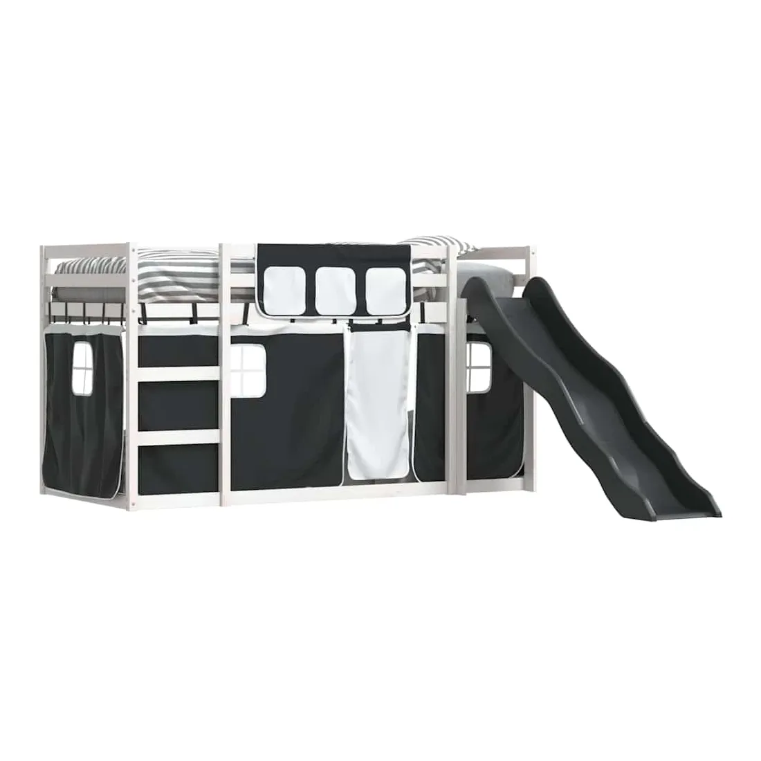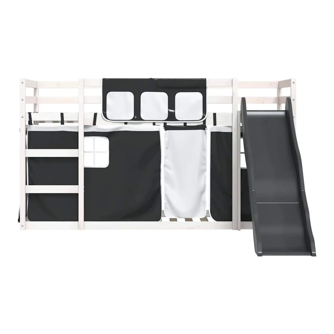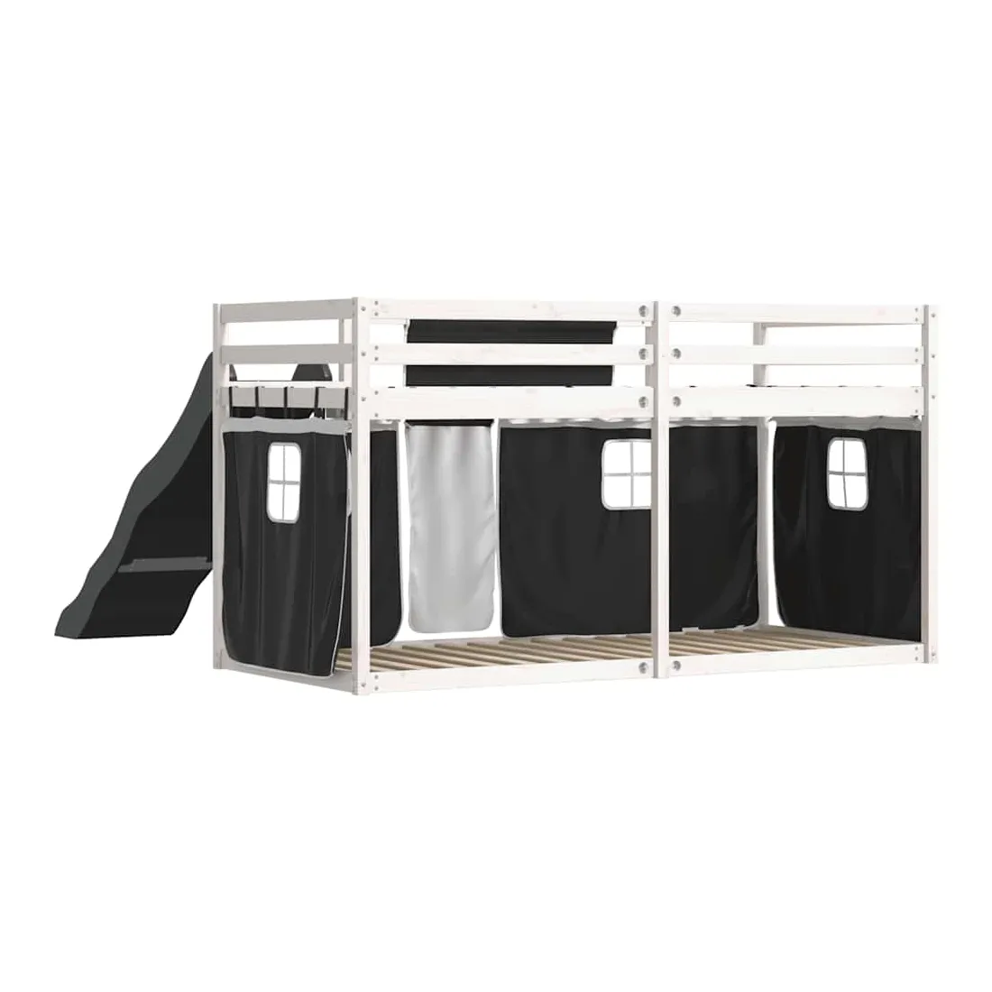 Ce lit superposé en bois est élégant et fonctionnel, ce qui en fait un supplément parfait à toute pièce dont l'espace est limité. Bois de pin massif : ce lit superposé est fabriqué en bois de pin massif pour plus de stabilité et de durabilité. Le bois de pin a un grain droit et les nœuds donnent au matériau son aspect rustique caractéristique.Très amusant : vous pouvez combiner les rideaux avec le lit superposé bas pour créer la base secrète de votre enfant, ce qui permet de s’amuser à l’heure du coucher et d’ajouter un point d'intérêt à la chambre à coucher !Barrières de sécurité : le lit supérieur est équipé de garde-corps de sécurité sur les 4 côtés, afin que votre enfant puisse dormir sans craindre de tomber.Échelle et toboggan pratiques : ce lit superposé est doté d'un toboggan amusant qui apporte de la joie et transforme leur chambre en une aire de jeux intérieure. La combinaison d'une échelle d'escalade et d'un toboggan rend l'heure du coucher plus vivante et plus intéressante pour les enfants.Lattes robustes : les lattes de contreplaqué assurent une bonne répartition du poids, garantissant que le matelas reste en place à chaque torsion de votre corps pendant le sommeil. Bon à savoir :Un matelas n'est pas inclus avec ce lit. Nous offrons une sélection variée de matelas. Vous pouvez consulter notre boutique pour trouver un matelas assorti. Attention :Pour éviter qu'il ne bascule, ce produit doit être utilisé avec le dispositif de fixation murale fourni.