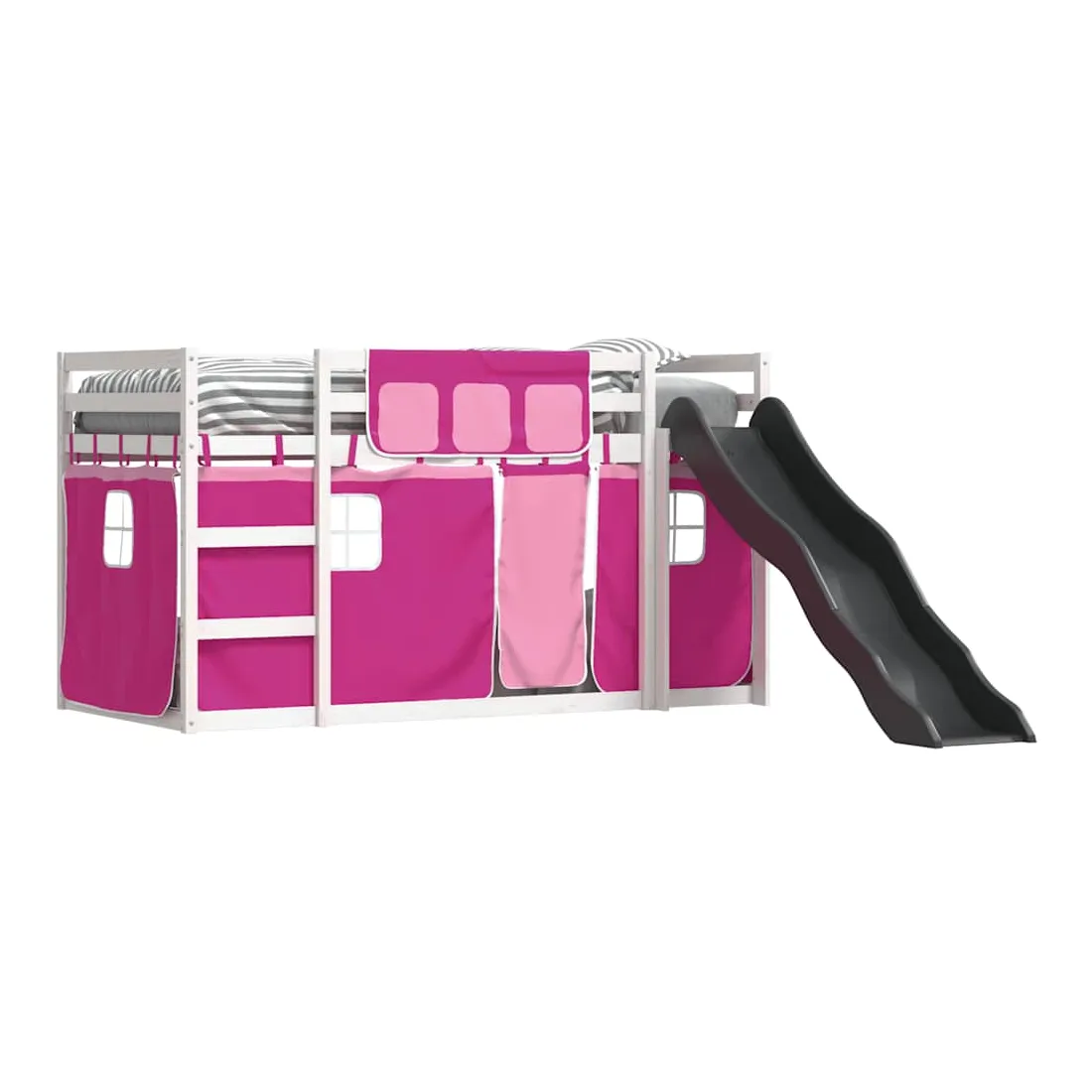 Ce lit superposé en bois est élégant et fonctionnel, ce qui en fait un supplément parfait à toute pièce dont l'espace est limité. Bois de pin massif : ce lit superposé est fabriqué en bois de pin massif pour plus de stabilité et de durabilité. Le bois de pin a un grain droit et les nœuds donnent au matériau son aspect rustique caractéristique.Très amusant : vous pouvez combiner les rideaux avec le lit superposé bas pour créer la base secrète de votre enfant, ce qui permet de s’amuser à l’heure du coucher et d’ajouter un point d'intérêt à la chambre à coucher !Barrières de sécurité : le lit supérieur est équipé de garde-corps de sécurité sur les 4 côtés, afin que votre enfant puisse dormir sans craindre de tomber.Échelle et toboggan pratiques : ce lit superposé est doté d'un toboggan amusant qui apporte de la joie et transforme leur chambre en une aire de jeux intérieure. La combinaison d'une échelle d'escalade et d'un toboggan rend l'heure du coucher plus vivante et plus intéressante pour les enfants.Lattes robustes : les lattes de contreplaqué assurent une bonne répartition du poids, garantissant que le matelas reste en place à chaque torsion de votre corps pendant le sommeil. Bon à savoir :Un matelas n'est pas inclus avec ce lit. Nous offrons une sélection variée de matelas. Vous pouvez consulter notre boutique pour trouver un matelas assorti. Attention :Pour éviter qu'il ne bascule, ce produit doit être utilisé avec le dispositif de fixation murale fourni.