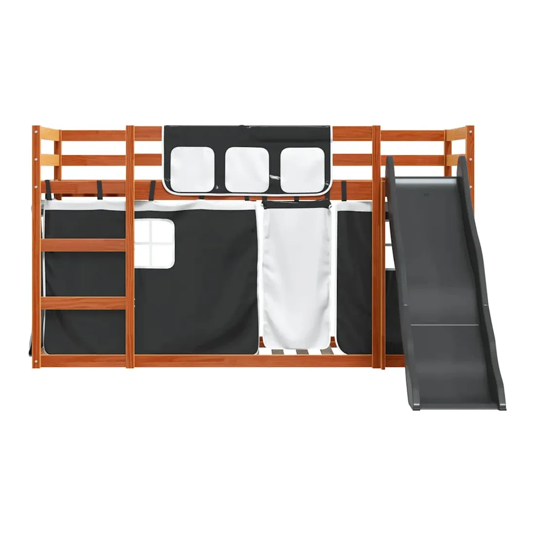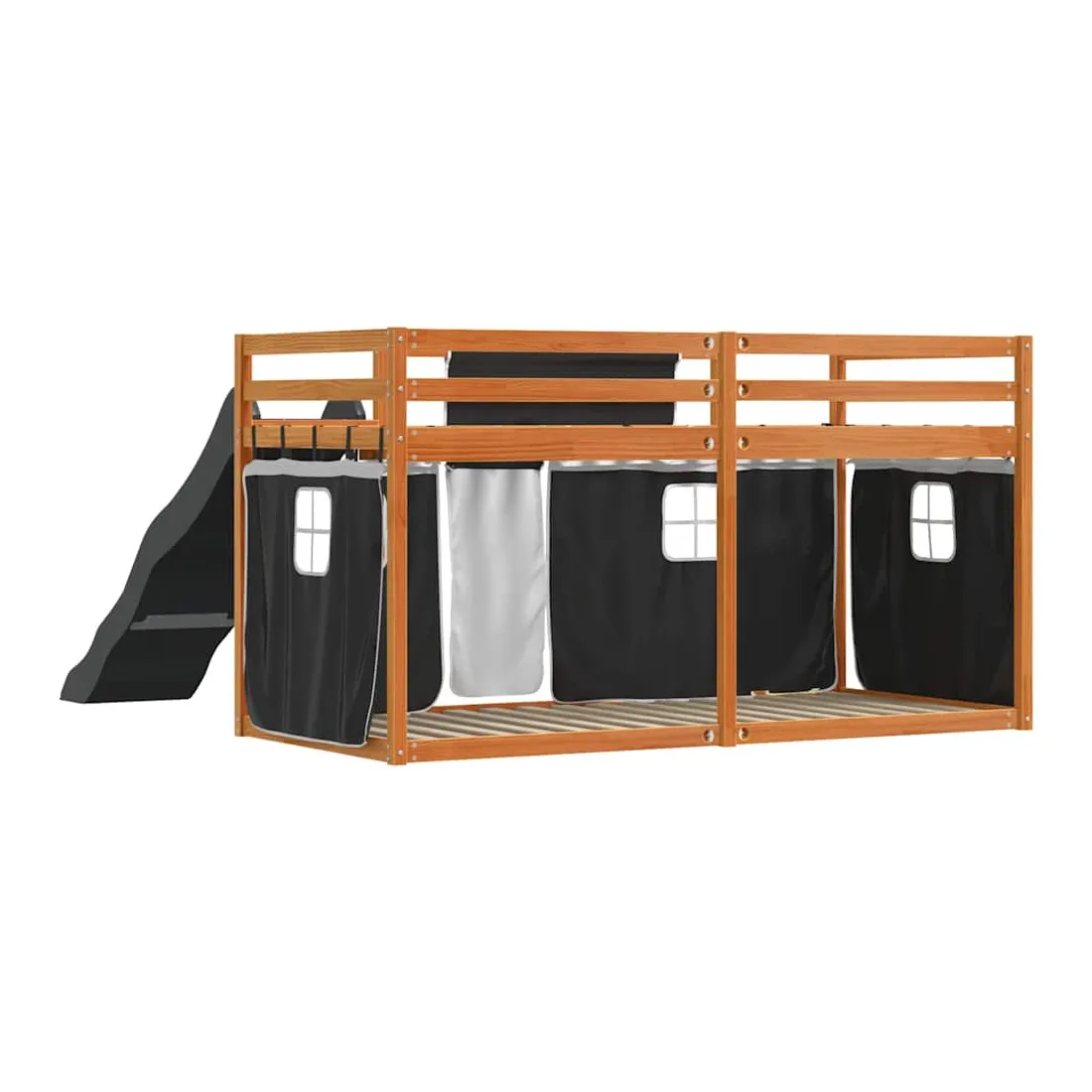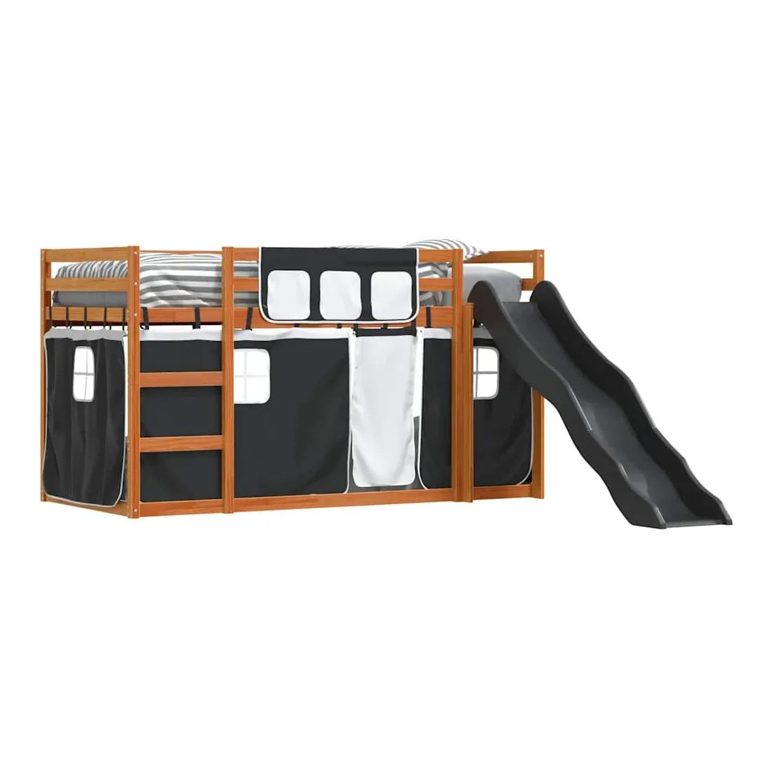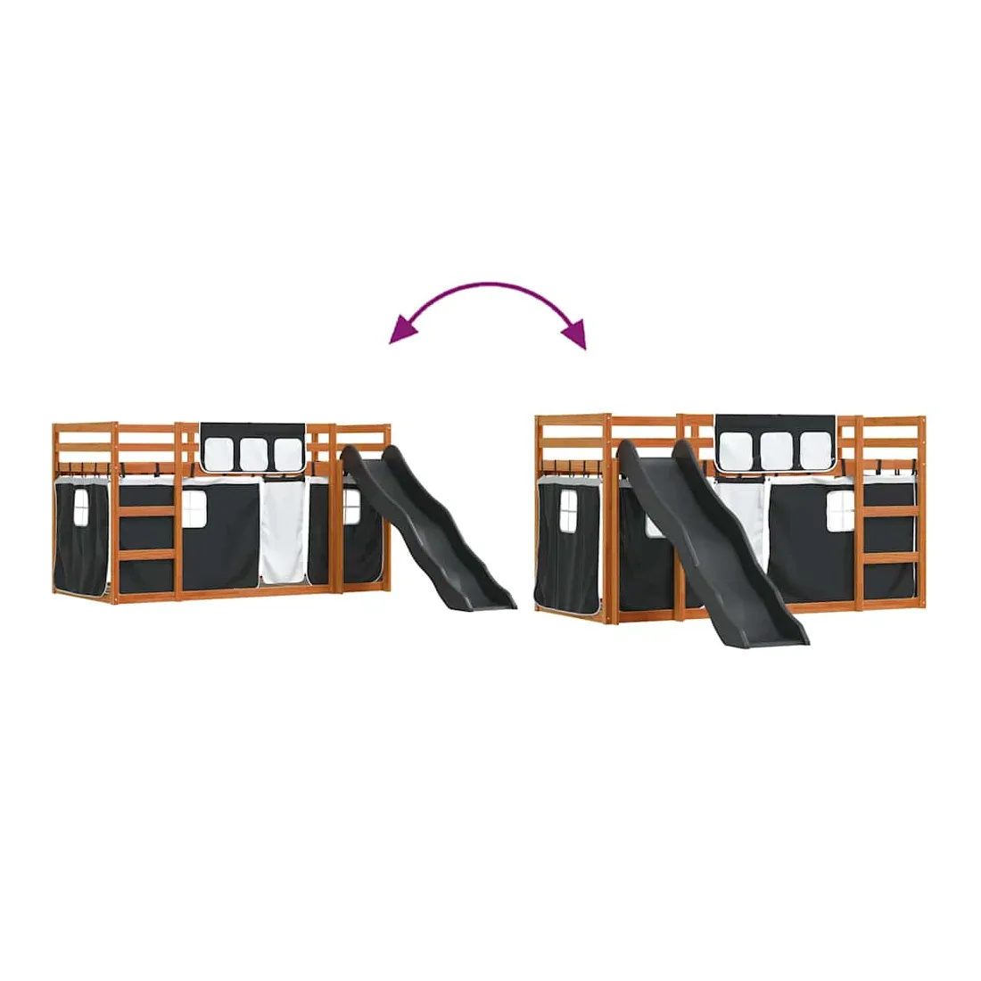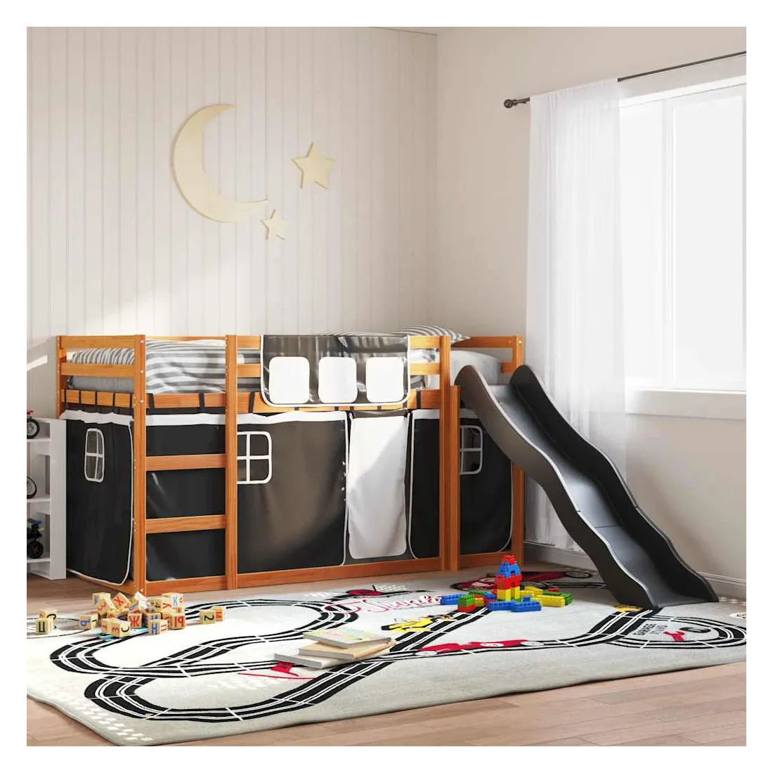 Ce lit superposé en bois est élégant et fonctionnel, ce qui en fait un supplément parfait à toute pièce dont l'espace est limité. Bois de pin massif : ce lit superposé est fabriqué en bois de pin massif pour plus de stabilité et de durabilité. Le bois de pin a un grain droit et les nœuds donnent au matériau son aspect rustique caractéristique.Très amusant : vous pouvez combiner les rideaux avec le lit superposé bas pour créer la base secrète de votre enfant, ce qui permet de s’amuser à l’heure du coucher et d’ajouter un point d'intérêt à la chambre à coucher !Barrières de sécurité : le lit supérieur est équipé de garde-corps de sécurité sur les 4 côtés, afin que votre enfant puisse dormir sans craindre de tomber.Échelle et toboggan pratiques : ce lit superposé est doté d'un toboggan amusant qui apporte de la joie et transforme leur chambre en une aire de jeux intérieure. La combinaison d'une échelle d'escalade et d'un toboggan rend l'heure du coucher plus vivante et plus intéressante pour les enfants.Lattes robustes : les lattes de contreplaqué assurent une bonne répartition du poids, garantissant que le matelas reste en place à chaque torsion de votre corps pendant le sommeil. Bon à savoir :Un matelas n'est pas inclus avec ce lit. Nous offrons une sélection variée de matelas. Vous pouvez consulter notre boutique pour trouver un matelas assorti. Attention :Pour éviter qu'il ne bascule, ce produit doit être utilisé avec le dispositif de fixation murale fourni.