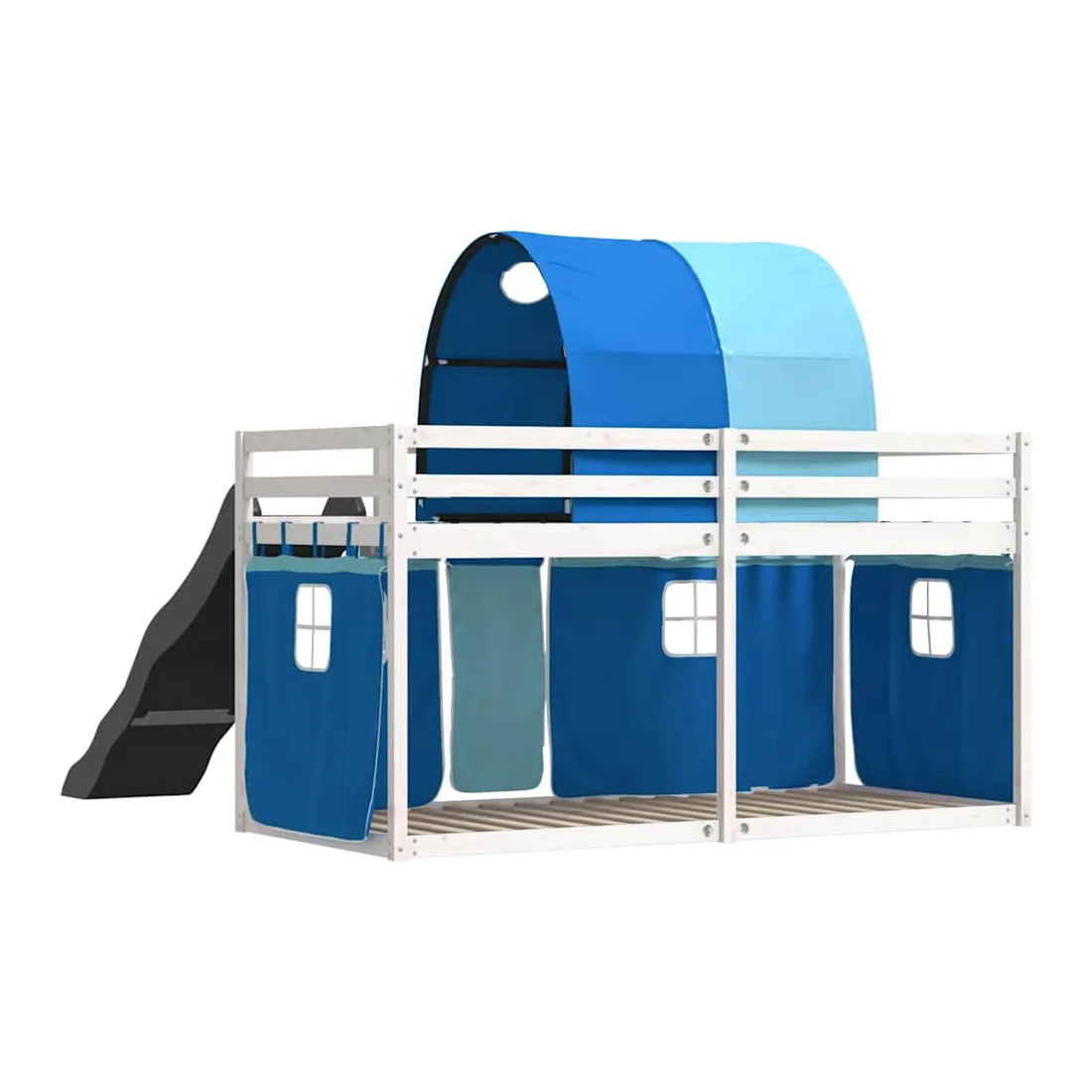 Ce lit superposé en bois est élégant et fonctionnel, ce qui en fait un supplément parfait à toute pièce dont l'espace est limité. Bois de pin massif : ce lit superposé est fabriqué en bois de pin massif pour plus de stabilité et de durabilité. Le bois de pin a un grain droit et les nœuds donnent au matériau son aspect rustique caractéristique.Très amusant : vous pouvez combiner les rideaux avec le lit superposé bas pour créer la base secrète de votre enfant, ce qui permet de s’amuser à l’heure du coucher et d’ajouter un point d'intérêt à la chambre à coucher !Barrières de sécurité : le lit supérieur est équipé de garde-corps de sécurité sur les 4 côtés, afin que votre enfant puisse dormir sans craindre de tomber.Échelle et toboggan pratiques : ce lit superposé est doté d'un toboggan amusant qui apporte de la joie et transforme leur chambre en une aire de jeux intérieure. La combinaison d'une échelle d'escalade et d'un toboggan rend l'heure du coucher plus vivante et plus intéressante pour les enfants.Lattes robustes : les lattes de contreplaqué assurent une bonne répartition du poids, garantissant que le matelas reste en place à chaque torsion de votre corps pendant le sommeil. Bon à savoir :Un matelas n'est pas inclus avec ce lit. Nous offrons une sélection variée de matelas. Vous pouvez consulter notre boutique pour trouver un matelas assorti. Attention :Pour éviter qu'il ne bascule, ce produit doit être utilisé avec le dispositif de fixation murale fourni.