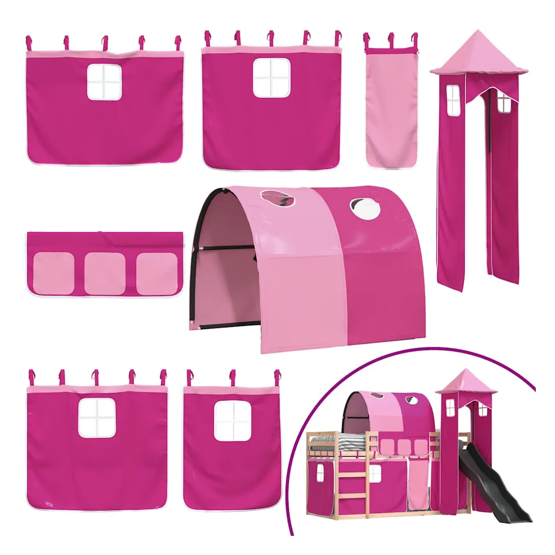 Ce lit superposé en bois est élégant et fonctionnel, ce qui en fait un supplément parfait à toute pièce dont l'espace est limité. Bois de pin massif : ce lit superposé est fabriqué en bois de pin massif pour plus de stabilité et de durabilité. Le bois de pin a un grain droit et les nœuds donnent au matériau son aspect rustique caractéristique.Très amusant : vous pouvez combiner les rideaux avec le lit superposé bas pour créer la base secrète de votre enfant, ce qui permet de s’amuser à l’heure du coucher et d’ajouter un point d'intérêt à la chambre à coucher !Barrières de sécurité : le lit supérieur est équipé de garde-corps de sécurité sur les 4 côtés, afin que votre enfant puisse dormir sans craindre de tomber.Échelle et toboggan pratiques : ce lit superposé est doté d'un toboggan amusant qui apporte de la joie et transforme leur chambre en une aire de jeux intérieure. La combinaison d'une échelle d'escalade et d'un toboggan rend l'heure du coucher plus vivante et plus intéressante pour les enfants.Lattes robustes : les lattes de contreplaqué assurent une bonne répartition du poids, garantissant que le matelas reste en place à chaque torsion de votre corps pendant le sommeil. Bon à savoir :Un matelas n'est pas inclus avec ce lit. Nous offrons une sélection variée de matelas. Vous pouvez consulter notre boutique pour trouver un matelas assorti. Attention :Pour éviter qu'il ne bascule, ce produit doit être utilisé avec le dispositif de fixation murale fourni.