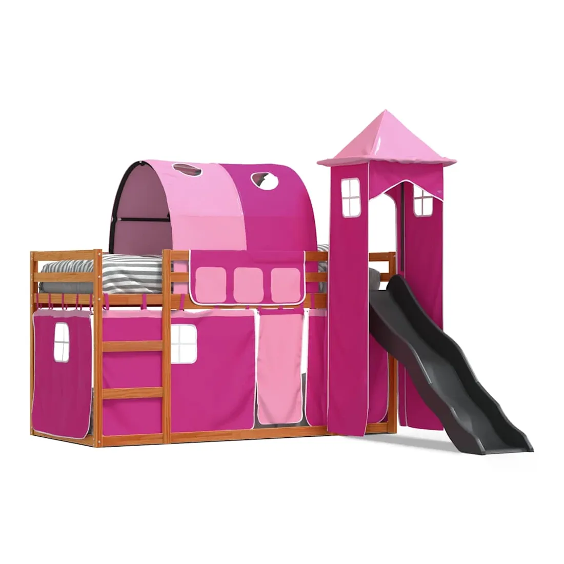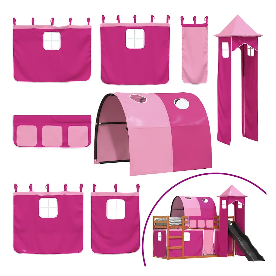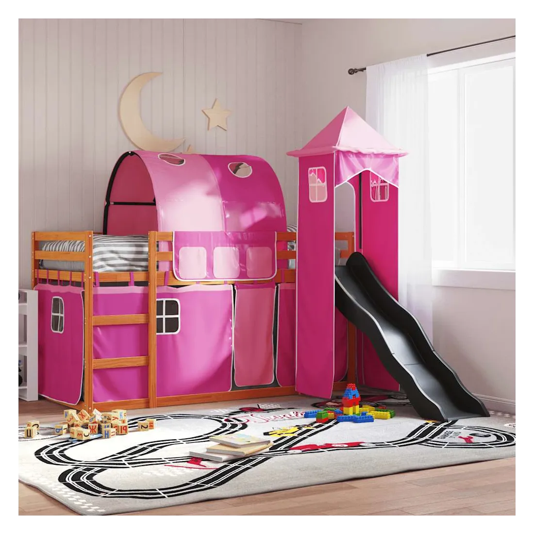Ce lit superposé en bois est élégant et fonctionnel, ce qui en fait un supplément parfait à toute pièce dont l'espace est limité. Bois de pin massif : ce lit superposé est fabriqué en bois de pin massif pour plus de stabilité et de durabilité. Le bois de pin a un grain droit et les nœuds donnent au matériau son aspect rustique caractéristique.Très amusant : vous pouvez combiner les rideaux avec le lit superposé bas pour créer la base secrète de votre enfant, ce qui permet de s’amuser à l’heure du coucher et d’ajouter un point d'intérêt à la chambre à coucher !Barrières de sécurité : le lit supérieur est équipé de garde-corps de sécurité sur les 4 côtés, afin que votre enfant puisse dormir sans craindre de tomber.Échelle et toboggan pratiques : ce lit superposé est doté d'un toboggan amusant qui apporte de la joie et transforme leur chambre en une aire de jeux intérieure. La combinaison d'une échelle d'escalade et d'un toboggan rend l'heure du coucher plus vivante et plus intéressante pour les enfants.Lattes robustes : les lattes de contreplaqué assurent une bonne répartition du poids, garantissant que le matelas reste en place à chaque torsion de votre corps pendant le sommeil. Bon à savoir :Un matelas n'est pas inclus avec ce lit. Nous offrons une sélection variée de matelas. Vous pouvez consulter notre boutique pour trouver un matelas assorti. Attention :Pour éviter qu'il ne bascule, ce produit doit être utilisé avec le dispositif de fixation murale fourni.