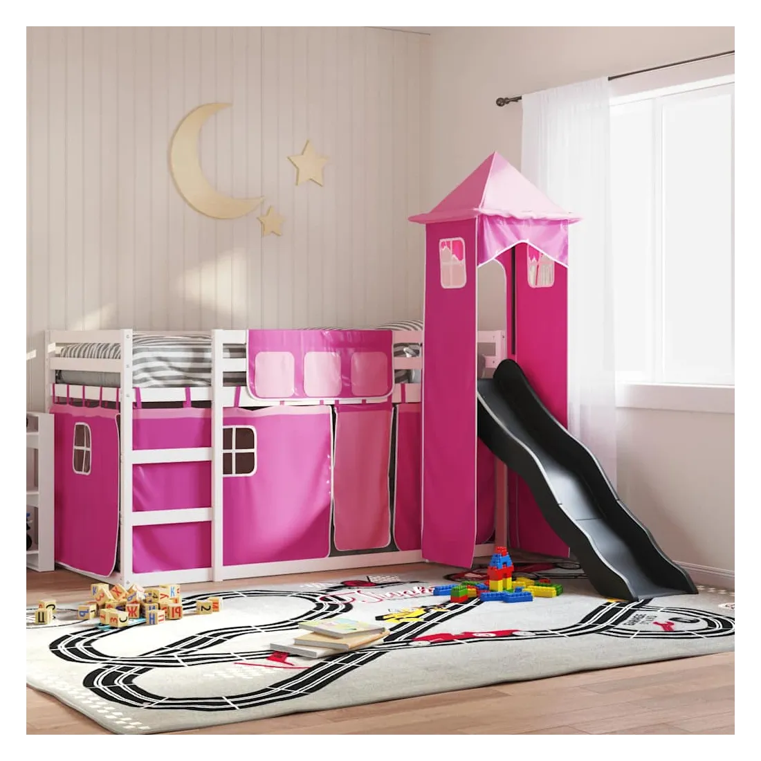 Ce lit superposé en bois est élégant et fonctionnel, ce qui en fait un supplément parfait à toute pièce dont l'espace est limité. Bois de pin massif : ce lit superposé est fabriqué en bois de pin massif pour plus de stabilité et de durabilité. Le bois de pin a un grain droit et les nœuds donnent au matériau son aspect rustique caractéristique.Très amusant : vous pouvez combiner les rideaux avec le lit superposé bas pour créer la base secrète de votre enfant, ce qui permet de s’amuser à l’heure du coucher et d’ajouter un point d'intérêt à la chambre à coucher !Barrières de sécurité : le lit supérieur est équipé de garde-corps de sécurité sur les 4 côtés, afin que votre enfant puisse dormir sans craindre de tomber.Échelle et toboggan pratiques : ce lit superposé est doté d'un toboggan amusant qui apporte de la joie et transforme leur chambre en une aire de jeux intérieure. La combinaison d'une échelle d'escalade et d'un toboggan rend l'heure du coucher plus vivante et plus intéressante pour les enfants.Lattes robustes : les lattes de contreplaqué assurent une bonne répartition du poids, garantissant que le matelas reste en place à chaque torsion de votre corps pendant le sommeil. Bon à savoir :Un matelas n'est pas inclus avec ce lit. Nous offrons une sélection variée de matelas. Vous pouvez consulter notre boutique pour trouver un matelas assorti. Attention :Pour éviter qu'il ne bascule, ce produit doit être utilisé avec le dispositif de fixation murale fourni.