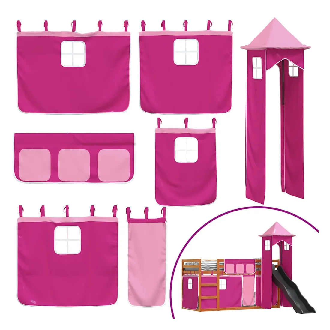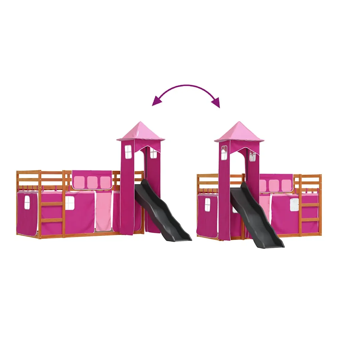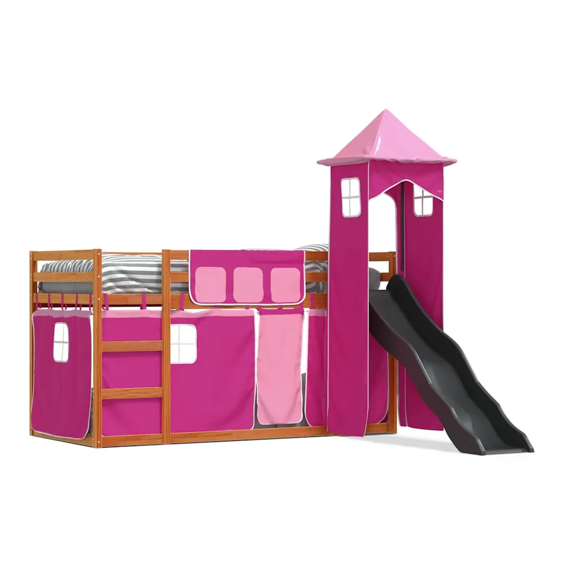 Ce lit superposé en bois est élégant et fonctionnel, ce qui en fait un supplément parfait à toute pièce dont l'espace est limité. Bois de pin massif : ce lit superposé est fabriqué en bois de pin massif pour plus de stabilité et de durabilité. Le bois de pin a un grain droit et les nœuds donnent au matériau son aspect rustique caractéristique.Très amusant : vous pouvez combiner les rideaux avec le lit superposé bas pour créer la base secrète de votre enfant, ce qui permet de s’amuser à l’heure du coucher et d’ajouter un point d'intérêt à la chambre à coucher !Barrières de sécurité : le lit supérieur est équipé de garde-corps de sécurité sur les 4 côtés, afin que votre enfant puisse dormir sans craindre de tomber.Échelle et toboggan pratiques : ce lit superposé est doté d'un toboggan amusant qui apporte de la joie et transforme leur chambre en une aire de jeux intérieure. La combinaison d'une échelle d'escalade et d'un toboggan rend l'heure du coucher plus vivante et plus intéressante pour les enfants.Lattes robustes : les lattes de contreplaqué assurent une bonne répartition du poids, garantissant que le matelas reste en place à chaque torsion de votre corps pendant le sommeil. Bon à savoir :Un matelas n'est pas inclus avec ce lit. Nous offrons une sélection variée de matelas. Vous pouvez consulter notre boutique pour trouver un matelas assorti. Attention :Pour éviter qu'il ne bascule, ce produit doit être utilisé avec le dispositif de fixation murale fourni.