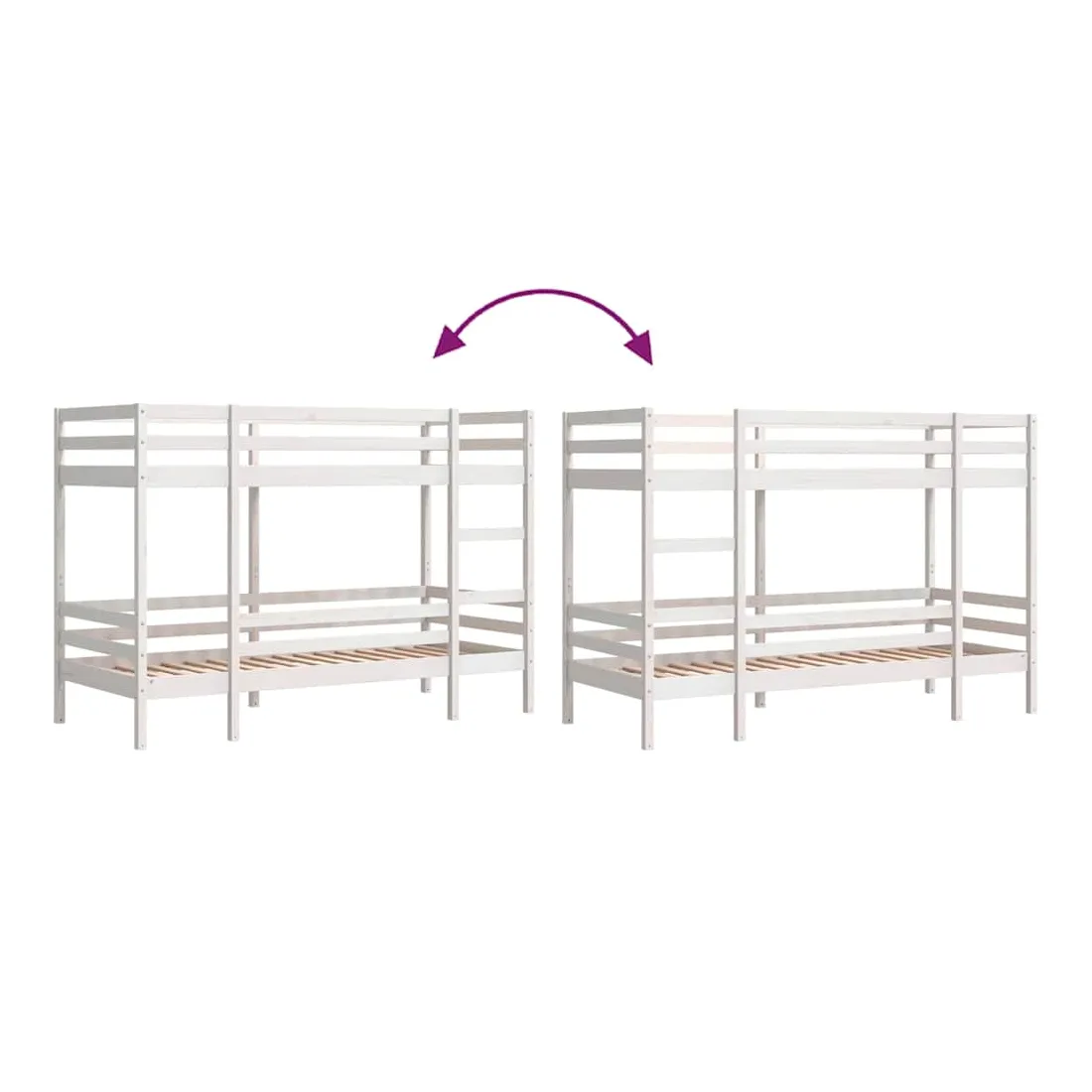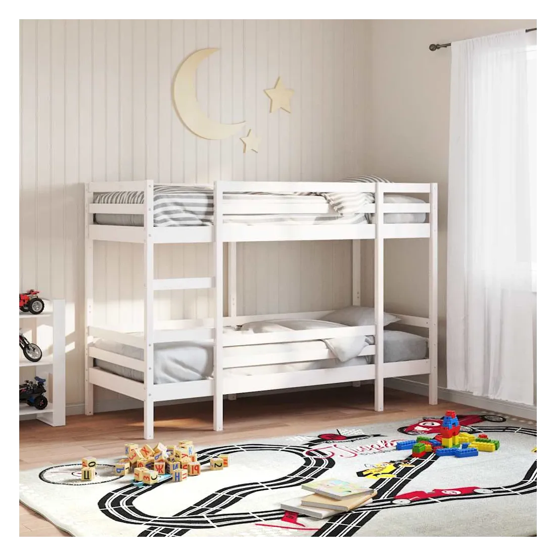 Ce lit superposé en bois est élégant et fonctionnel, ce qui en fait un supplément parfait à toute pièce dont l'espace est limité. Robuste et stable : le bois de pin massif est connu pour sa résistance et sa durabilité. Ses grains droits et ses nœuds distinctifs contribuent à son charme rustique.Design sûr : le lit surélevé est conçu dans un souci de sécurité. Il comprend des garde-corps qui empêchent l'utilisateur de rouler pendant son sommeil.Échelle pratique : l'échelle de ce lit superposé facilite et sécurise le sommeil à l'étage supérieur et offre une sécurité et une stabilité suffisantes.Convient aux espaces limités : le lit superposé en bois massif est un excellent choix pour toute pièce dont l'espace est limité. Il fournit deux lits individuels avec un design compact. Bon à savoir :La livraison comprend uniquement les cadres de lit. Les matelas ne sont pas inclus. Vous pouvez consulter notre boutique pour trouver les matelas assortis. Attention :Pour éviter qu'il ne bascule, ce produit doit être utilisé avec le dispositif de fixation murale fourni.