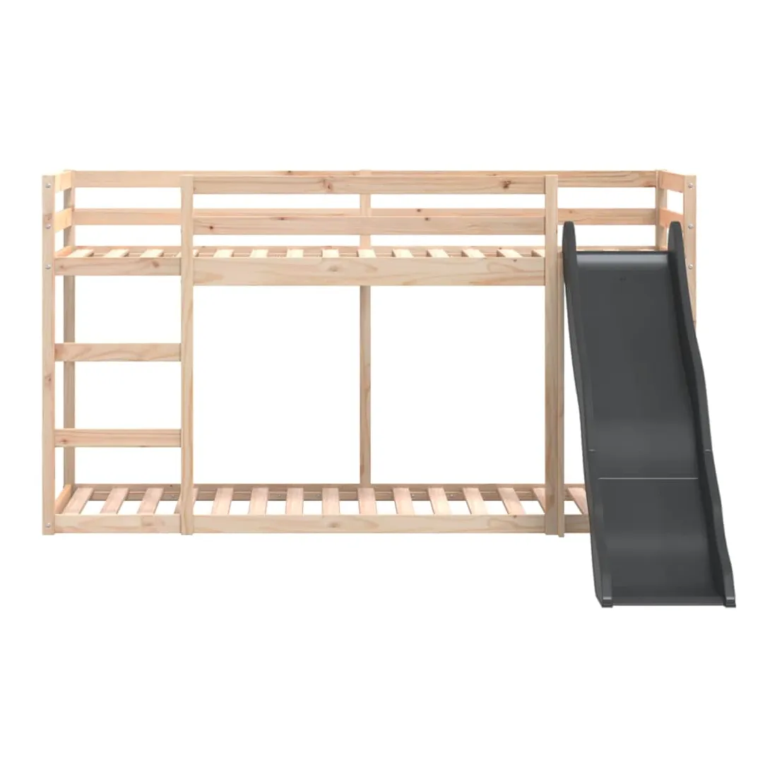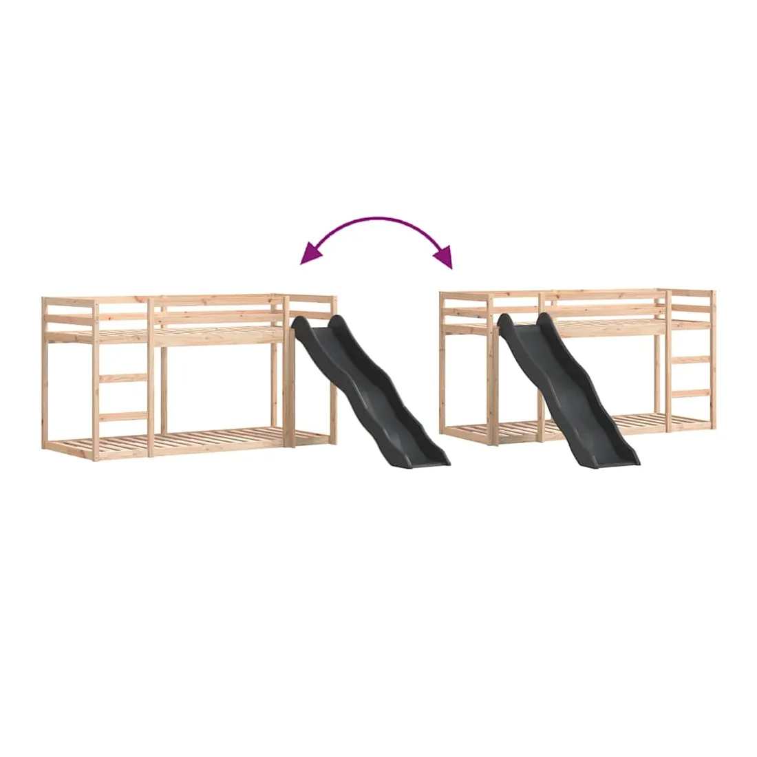 Ce lit superposé en bois avec toboggan et échelle est conçu pour divertir et optimiser l'espace. Robuste et stable : le bois de pin massif est connu pour sa résistance et sa durabilité. Ses grains droits et ses nœuds distinctifs contribuent à son charme rustique.Barrières de sécurité : le lit mezzanine pour enfants est équipé de garde-corps de sécurité sur les 4 côtés, afin que votre enfant puisse dormir sans craindre de tomber.Pleine utilisation de l'espace : le lit inférieur de ce lit superposé pour enfants est posé sur le sol, ce qui vous permet de placer un matelas au niveau inférieur ou d'utiliser le niveau inférieur comme espace de rangement ou de jeu.Échelle et toboggan pratiques : ce lit mi-hauteur pour enfants est doté d'un toboggan amusant qui apporte de la joie et transforme leur chambre en une aire de jeux intérieure. La combinaison d'une échelle d'escalade et d'un toboggan rend l'heure du coucher plus vivante et plus intéressante pour les enfants. Bon à savoir :La livraison comprend uniquement les cadres de lit. Les matelas ne sont pas inclus. Vous pouvez consulter notre boutique pour trouver les matelas assortis. Attention :Pour éviter qu'il ne bascule, ce produit doit être utilisé avec le dispositif de fixation murale fourni.