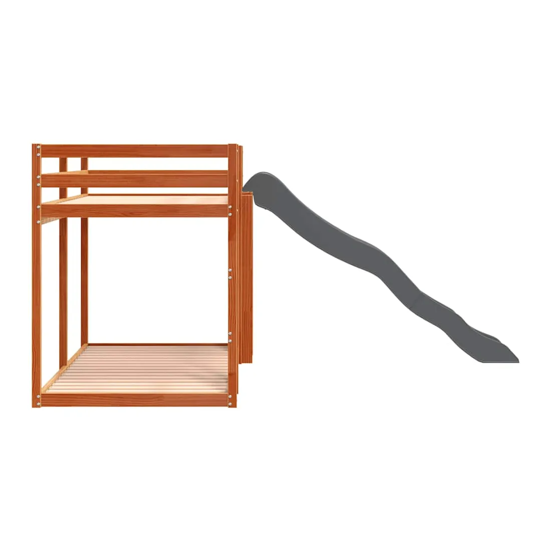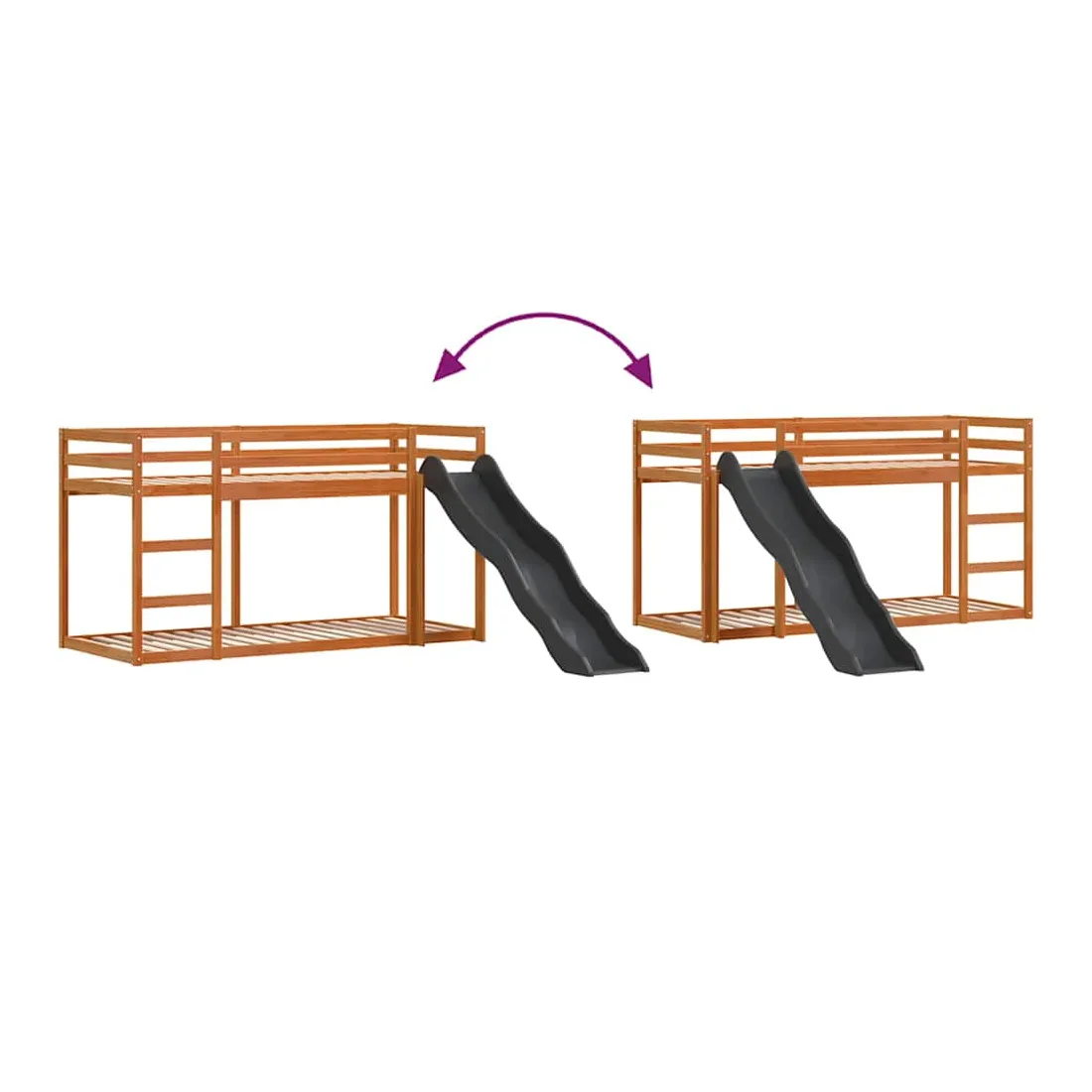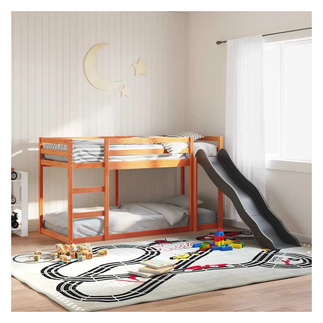 vidaXLCe lit superposé en bois avec toboggan et échelle est conçu pour divertir et optimiser l'espace. Robuste et stable : le bois de pin massif est connu pour sa résistance et sa durabilité. Ses grains droits et ses nœuds distinctifs contribuent à son charme rustique.Barrières de sécurité : le lit mezzanine pour enfants est équipé de garde-corps de sécurité sur les 4 côtés, afin que votre enfant puisse dormir sans craindre de tomber.Pleine utilisation de l'espace : le lit inférieur de ce lit superposé pour enfants est posé sur le sol, ce qui vous permet de placer un matelas au niveau inférieur ou d'utiliser le niveau inférieur comme espace de rangement ou de jeu.Échelle et toboggan pratiques : ce lit mi-hauteur pour enfants est doté d'un toboggan amusant qui apporte de la joie et transforme leur chambre en une aire de jeux intérieure. La combinaison d'une échelle d'escalade et d'un toboggan rend l'heure du coucher plus vivante et plus intéressante pour les enfants. Bon à savoir :La livraison comprend uniquement les cadres de lit. Les matelas ne sont pas inclus. Vous pouvez consulter notre boutique pour trouver les matelas assortis. Attention :Pour éviter qu'il ne bascule, ce produit doit être utilisé avec le dispositif de fixation murale fourni.