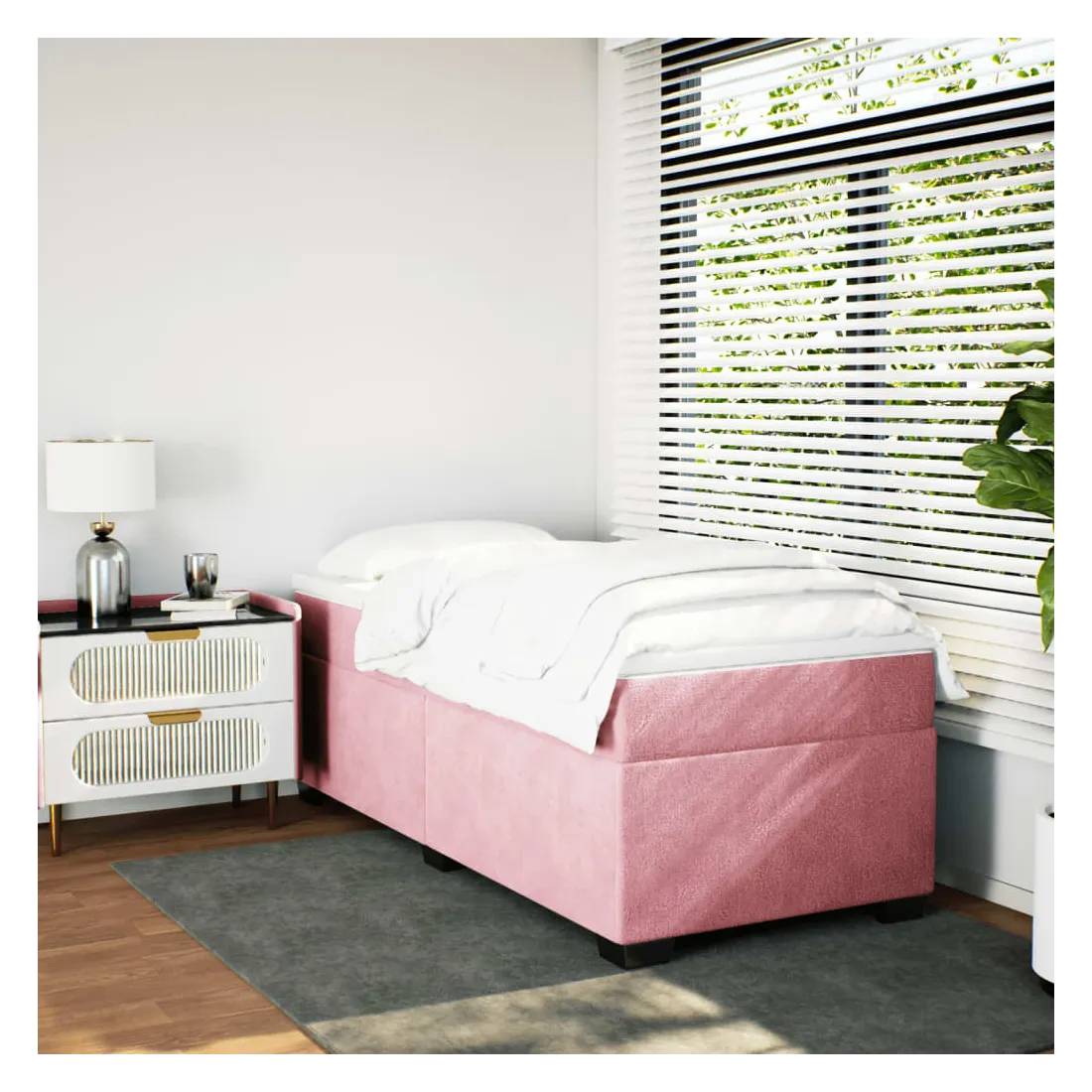 Utilisez ce lit à sommier pour profiter d'une nuit de sommeil réparatrice ! Il vous offre une relaxation maximale et un sommeil agréable. Velours doux : le velours est un tissu doux et luxueux qui se reconnaît à son tas dense de fibres uniformément coupées qui ont une touche lisse. Le tissu en velours présente un toucher doux distinctif, ce qui le rend confortable au toucher.Matelas à ressorts ensachés : ce matelas à ressorts ensachés comporte des ressorts ensachés individuels qui fonctionnent indépendamment pour offrir un soutien personnalisé en réagissant uniquement à la pression exercée dans chaque zone. Cette conception empêche « l'enroulement » et réduit le transfert de mouvement par rapport aux matelas traditionnels à ressorts ouverts. Chaque ressort ensaché soutient le corps individuellement.Surmatelas confortable : ce surmatelas améliore le soutien et le confort grâce à sa surface douce et respirante, tout en prolongeant la durée de vie de votre matelas. Sa housse amovible permet un lavage facile, ce qui facilite l'entretien.Lattes pour un soutien optimal : le cadre de lit est complété par des lattes pour offrir un soutien et une respirabilité essentiels à votre matelas.Pieds stables et durables : ce lit est soutenu par des pieds robustes, ce qui garantit sa stabilité, sa sécurité et sa fermeté. Bon à savoir :Pour des raisons d'hygiène, le matelas ne peut pas être retourné si l'emballage est retiré ou ouvert.