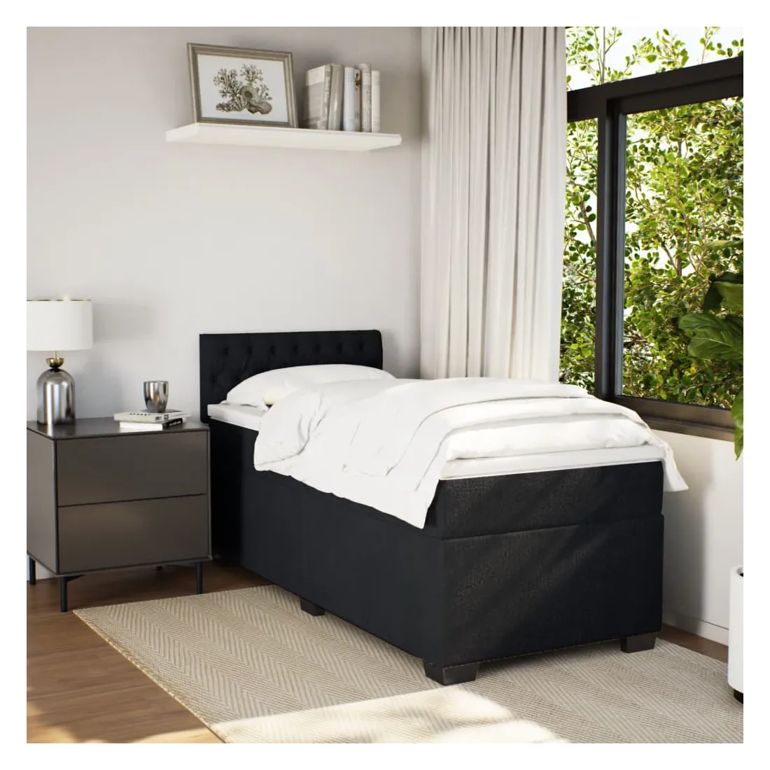 Utilisez ce lit à sommier pour profiter d'une nuit de sommeil réparatrice ! Il vous offre une relaxation maximale et un sommeil agréable. Velours doux : le velours est un tissu doux et luxueux qui se reconnaît à son tas dense de fibres uniformément coupées qui ont une touche lisse. Le tissu en velours présente un toucher doux distinctif, ce qui le rend confortable au toucher.Matelas à ressorts ensachés : ce matelas à ressorts ensachés comporte des ressorts ensachés individuels qui fonctionnent indépendamment pour offrir un soutien personnalisé en réagissant uniquement à la pression exercée dans chaque zone. Cette conception empêche « l'enroulement » et réduit le transfert de mouvement par rapport aux matelas traditionnels à ressorts ouverts. Chaque ressort ensaché soutient le corps individuellement.Surmatelas confortable : ce surmatelas améliore le soutien et le confort grâce à sa surface douce et respirante, tout en prolongeant la durée de vie de votre matelas. Sa housse amovible permet un lavage facile, ce qui facilite l'entretien.Excellent soutien : la tête de lit vous offre un excellent soutien du dos lorsque vous êtes assis dans votre lit pour lire ou regarder la télévision.Pieds stables et durables : ce lit est soutenu par des pieds robustes, ce qui garantit sa stabilité, sa sécurité et sa fermeté. Bon à savoir :Pour des raisons d'hygiène, le matelas ne peut pas être retourné si l'emballage est retiré ou ouvert.