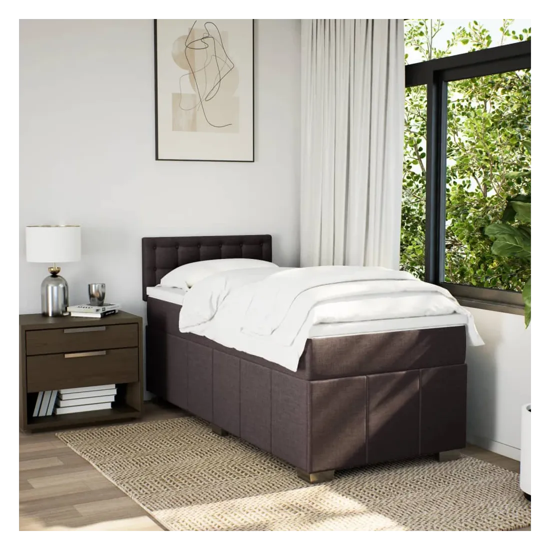 Utilisez ce lit à sommier pour profiter d'une nuit de sommeil réparatrice ! Il vous offre une relaxation maximale et un sommeil agréable. Matériau doux et durable : le tissu en polyester allie douceur, respirabilité et durabilité, vous garantissant un confort et une convivialité ultimes.Matelas à ressorts ensachés : ce matelas à ressorts ensachés comporte des ressorts ensachés individuels qui fonctionnent indépendamment pour offrir un soutien personnalisé en réagissant uniquement à la pression exercée dans chaque zone. Cette conception empêche « l'enroulement » et réduit le transfert de mouvement par rapport aux matelas traditionnels à ressorts ouverts. Chaque ressort ensaché soutient le corps individuellement.Tête de lit réglable en hauteur : la tête de lit est réglable en hauteur pour s'adapter à vos préférences.Surmatelas confortable : ce surmatelas améliore le soutien et le confort grâce à sa surface douce et respirante, tout en prolongeant la durée de vie de votre matelas. Sa housse amovible permet un lavage facile, ce qui facilite l'entretien.Lattes pour un soutien optimal : le cadre de lit est complété par des lattes pour offrir un soutien et une respirabilité essentiels à votre matelas. Bon à savoir :Pour des raisons d'hygiène, le matelas ne peut pas être retourné si l'emballage est retiré ou ouvert.