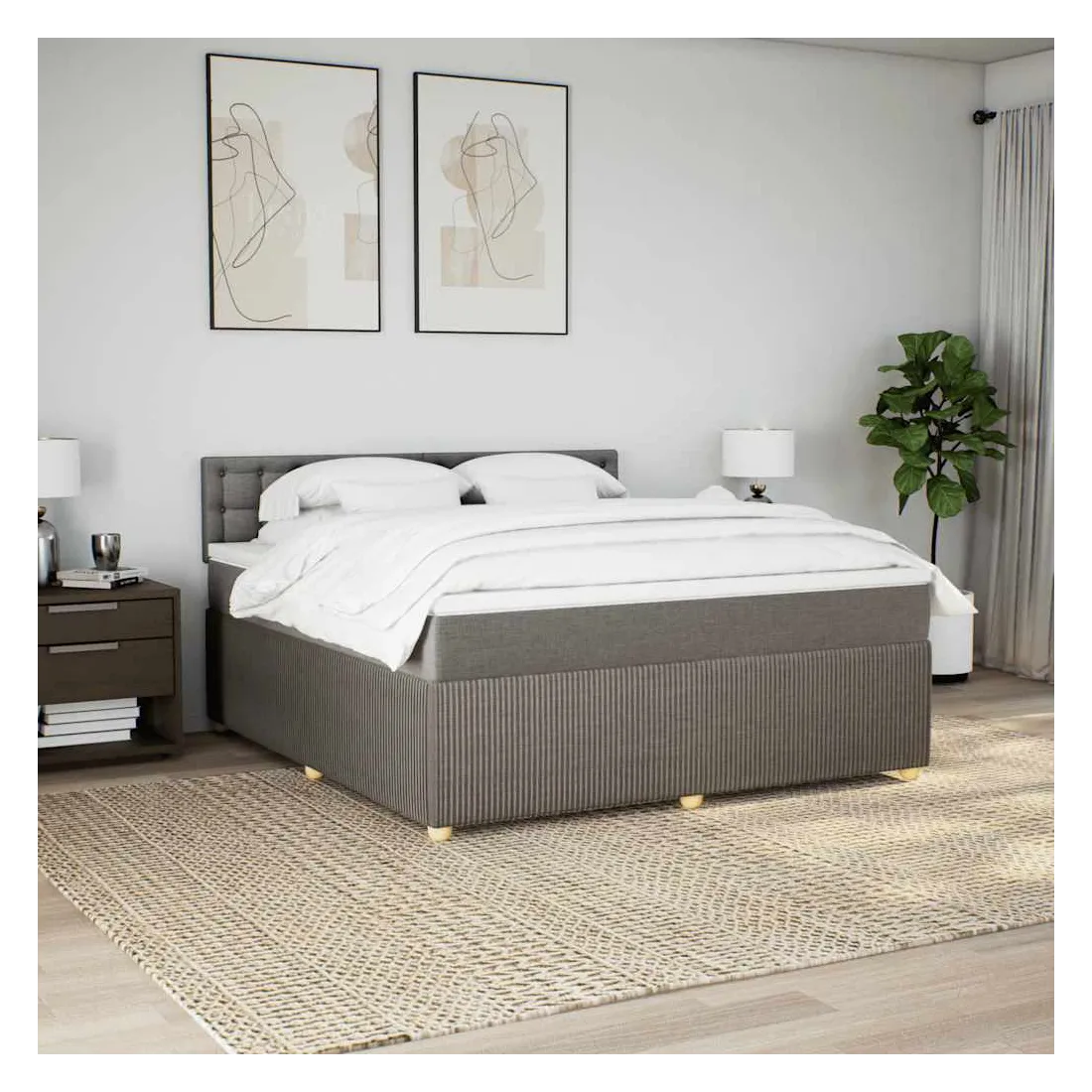Sommier à lattes de lit avec matelas Taupe 180x200 cm Tissu