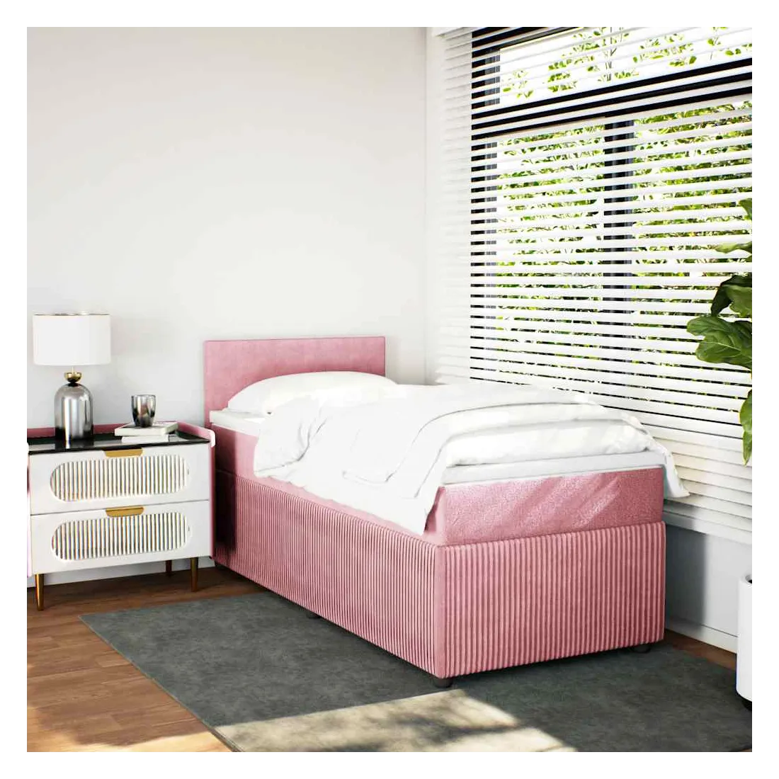 Utilisez ce lit à sommier pour profiter d'une nuit de sommeil réparatrice ! Il vous offre une relaxation maximale et un sommeil agréable. Matériau doux et confortable : le tissu en velours présente une surface douce et lisse qui offre une sensation agréable contre la peau, vous apportant chaleur et confort ultime.Matelas à ressorts ensachés : ce matelas à ressorts ensachés comporte des ressorts ensachés individuels qui fonctionnent indépendamment pour offrir un soutien personnalisé en réagissant uniquement à la pression exercée dans chaque zone. Cette conception empêche « l'enroulement » et réduit le transfert de mouvement par rapport aux matelas traditionnels à ressorts ouverts. Chaque ressort ensaché soutient le corps individuellement.Surmatelas confortable : ce surmatelas améliore le soutien et le confort grâce à sa surface douce et respirante, tout en prolongeant la durée de vie de votre matelas. Sa housse amovible permet un lavage facile, ce qui facilite l'entretien.Lattes pour un soutien optimal : le cadre de lit est complété par des lattes pour offrir un soutien et une respirabilité essentiels à votre matelas. Bon à savoir :Pour des raisons d'hygiène, le matelas ne peut pas être retourné si l'emballage est retiré ou ouvert.