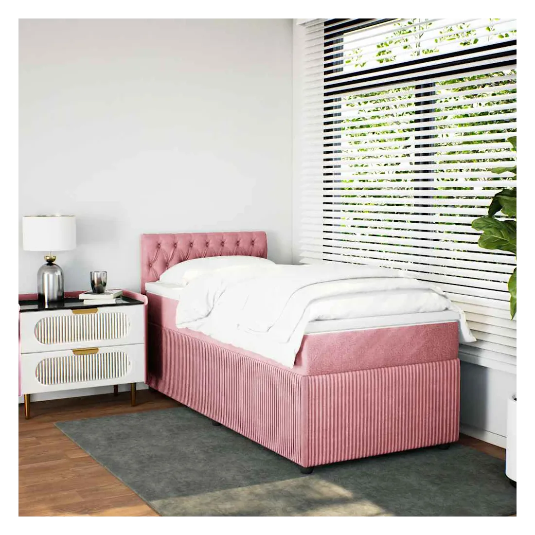 Utilisez ce lit à sommier pour profiter d'une nuit de sommeil réparatrice ! Il vous offre une relaxation maximale et un sommeil agréable. Matériau doux et confortable : le tissu en velours présente une surface douce et lisse qui offre une sensation agréable contre la peau, vous apportant chaleur et confort ultime.Matelas à ressorts ensachés : ce matelas à ressorts ensachés comporte des ressorts ensachés individuels qui fonctionnent indépendamment pour offrir un soutien personnalisé en réagissant uniquement à la pression exercée dans chaque zone. Cette conception empêche « l'enroulement » et réduit le transfert de mouvement par rapport aux matelas traditionnels à ressorts ouverts. Chaque ressort ensaché soutient le corps individuellement.Surmatelas confortable : ce surmatelas améliore le soutien et le confort grâce à sa surface douce et respirante, tout en prolongeant la durée de vie de votre matelas. Sa housse amovible permet un lavage facile, ce qui facilite l'entretien.Lattes pour un soutien optimal : le cadre de lit est complété par des lattes pour offrir un soutien et une respirabilité essentiels à votre matelas. Bon à savoir :Pour des raisons d'hygiène, le matelas ne peut pas être retourné si l'emballage est retiré ou ouvert.
