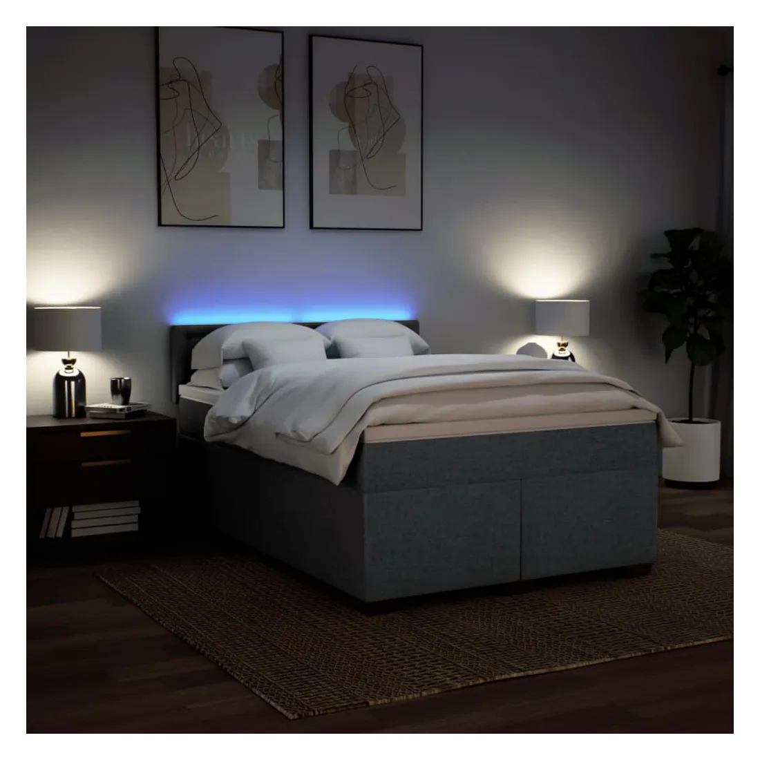 Utilisez ce lit à sommier pour profiter d'une nuit de sommeil réparatrice ! Il vous offre une relaxation maximale et un sommeil agréable. Matériau doux et durable : le tissu en polyester allie douceur, respirabilité et durabilité, vous garantissant un confort et une convivialité ultimes. Matelas à ressorts ensachés : ce matelas à ressorts ensachés comporte des ressorts ensachés individuels qui fonctionnent indépendamment pour offrir un soutien personnalisé en réagissant uniquement à la pression exercée dans chaque zone. Cette conception empêche « l'enroulement » et réduit le transfert de mouvement par rapport aux matelas traditionnels à ressorts ouverts. Chaque ressort ensaché soutient le corps individuellement. Lumières LED pour une ambiance agréable : ce lit est équipé de lumières LE
