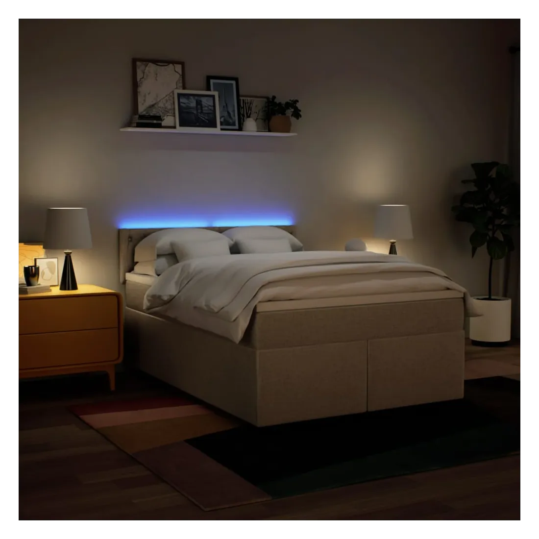 Utilisez ce lit à sommier pour profiter d'une nuit de sommeil réparatrice ! Il vous offre une relaxation maximale et un sommeil agréable. Matériau doux et durable : le tissu en polyester allie douceur, respirabilité et durabilité, vous garantissant un confort et une convivialité ultimes.Matelas à ressorts ensachés : ce matelas à ressorts ensachés comporte des ressorts ensachés individuels qui fonctionnent indépendamment pour offrir un soutien personnalisé en réagissant uniquement à la pression exercée dans chaque zone. Cette conception empêche « l'enroulement » et réduit le transfert de mouvement par rapport aux matelas traditionnels à ressorts ouverts. Chaque ressort ensaché soutient le corps individuellement.Lumières LED pour une ambiance agréable : ce lit est équipé de lumières LED qui peuvent être facilement réglées pour créer un spectacle lumineux personnalisé. Vous pouvez personnaliser les modes, les couleurs et la luminosité pour améliorer l'ambiance de votre espace intérieur.Surmatelas confortable : ce surmatelas améliore le soutien et le confort grâce à sa surface douce et respirante, tout en prolongeant la durée de vie de votre matelas. Sa housse amovible permet un lavage facile, ce qui facilite l'entretien. Bon à savoir :Ce produit est doté d'un connecteur USB qui nécessite une source d'alimentation USB de 5V certifiée (non incluse).Pour des raisons d'hygiène, le matelas ne peut pas être retourné si l'emballage est retiré ou ouvert.Seule la partie avec un symbole de ciseaux peut être coupée et seule la partie avec l'USB continuera à fonctionner comme avant.