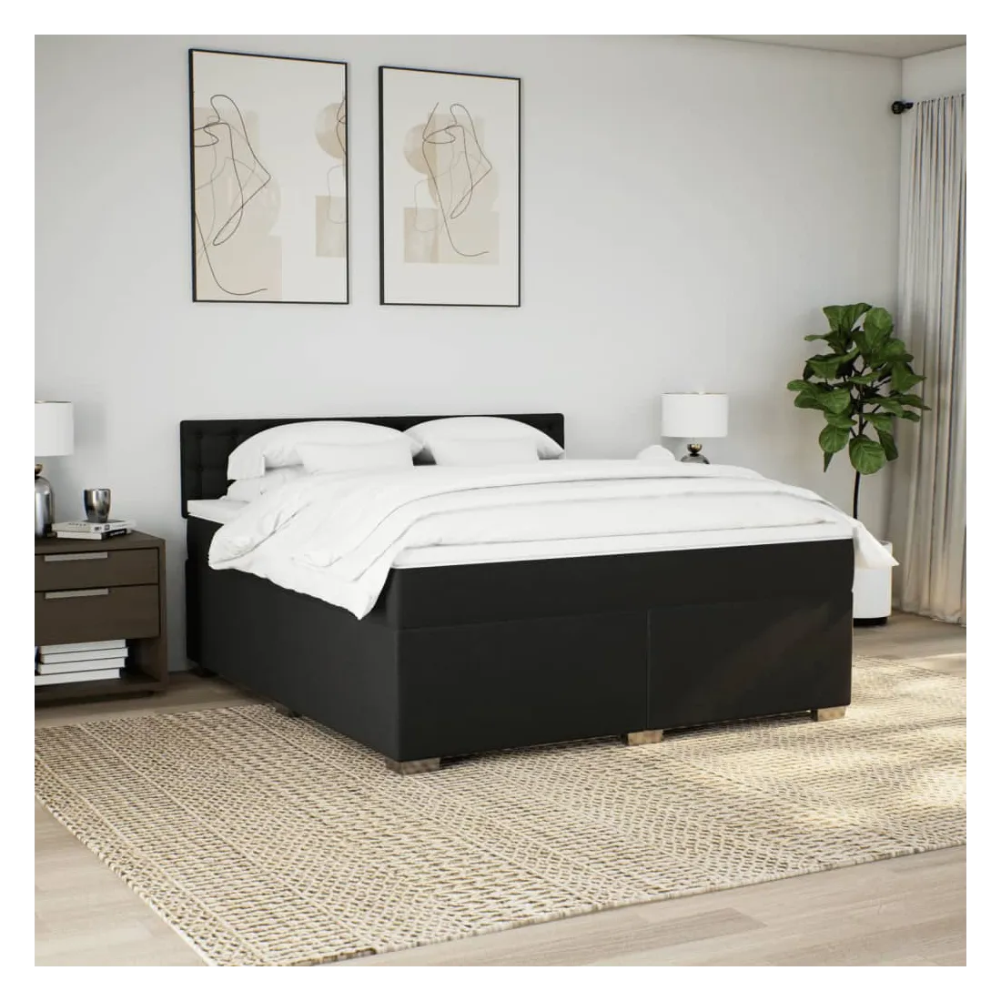 Sommier à lattes de lit avec matelas Noir 180x200 cm Tissu