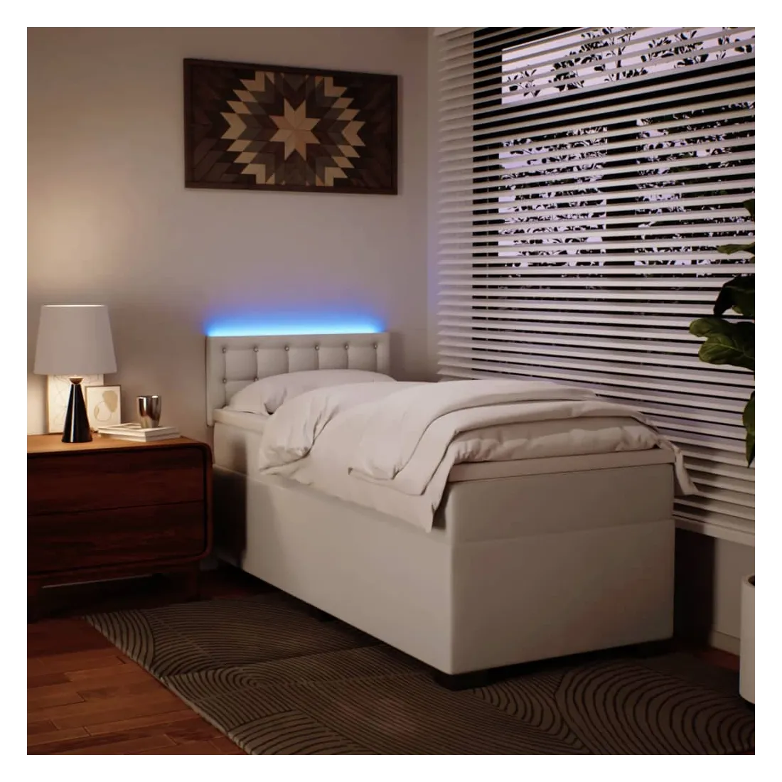 Utilisez ce lit à sommier pour profiter d'une nuit de sommeil réparatrice ! Il vous offre une relaxation maximale et un sommeil agréable. Longue durée de vie et entretien facile : le similicuir est un matériau très durable qui résiste aux taches, ce qui le rend facile à nettoyer avec un chiffon humide. Sa surface lisse lui confère un aspect élégant qui ressemble à celui du cuir véritable.Matelas à ressorts ensachés : ce matelas à ressorts ensachés comporte des ressorts ensachés individuels qui fonctionnent indépendamment pour offrir un soutien personnalisé en réagissant uniquement à la pression exercée dans chaque zone. Cette conception empêche « l'enroulement » et réduit le transfert de mouvement par rapport aux matelas traditionnels à ressorts ouverts. Chaque ressort ensaché soutient le corps individuellement.Lumières LED pour une ambiance agréable : ce lit est équipé de lumières LED qui peuvent être facilement réglées pour créer un spectacle lumineux personnalisé. Vous pouvez personnaliser les modes, les couleurs et la luminosité pour améliorer l'ambiance de votre espace intérieur.Surmatelas confortable : ce surmatelas améliore le soutien et le confort grâce à sa surface douce et respirante, tout en prolongeant la durée de vie de votre matelas. Sa housse amovible permet un lavage facile, ce qui facilite l'entretien. Bon à savoir :Ce produit est doté d'un connecteur USB qui nécessite une source d'alimentation USB de 5V certifiée (non incluse).Pour des raisons d'hygiène, le matelas ne peut pas être retourné si l'emballage est retiré ou ouvert.Seule la partie avec un symbole de ciseaux peut être coupée et seule la partie avec l'USB continuera à fonctionner comme avant.