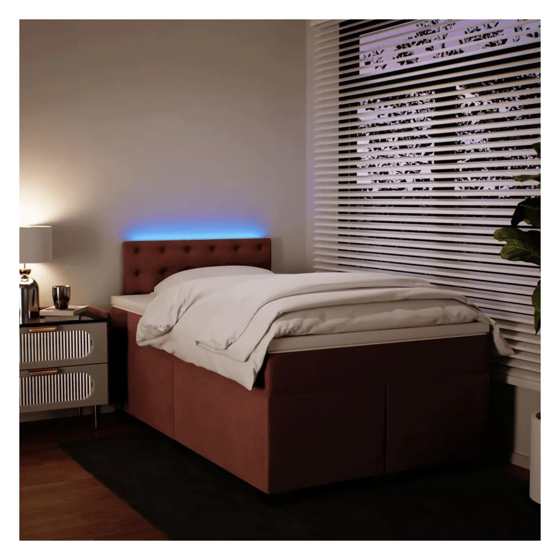 Utilisez ce lit à sommier pour profiter d'une nuit de sommeil réparatrice ! Il vous offre une relaxation maximale et un sommeil agréable. Matériau doux et confortable : le tissu en velours présente une surface douce et lisse qui offre une sensation agréable contre la peau, vous apportant chaleur et confort ultime.Matelas à ressorts ensachés : ce matelas à ressorts ensachés comporte des ressorts ensachés individuels qui fonctionnent indépendamment pour offrir un soutien personnalisé en réagissant uniquement à la pression exercée dans chaque zone. Cette conception empêche « l'enroulement » et réduit le transfert de mouvement par rapport aux matelas traditionnels à ressorts ouverts. Chaque ressort ensaché soutient le corps individuellement.Lumières LED pour une ambiance agréable : ce lit est équipé de lumières LED qui peuvent être facilement réglées pour créer un spectacle lumineux personnalisé. Vous pouvez personnaliser les modes, les couleurs et la luminosité pour améliorer l'ambiance de votre espace intérieur.Surmatelas confortable : ce surmatelas améliore le soutien et le confort grâce à sa surface douce et respirante, tout en prolongeant la durée de vie de votre matelas. Sa housse amovible permet un lavage facile, ce qui facilite l'entretien. Bon à savoir :Ce produit est doté d'un connecteur USB qui nécessite une source d'alimentation USB de 5V certifiée (non incluse).Pour des raisons d'hygiène, le matelas ne peut pas être retourné si l'emballage est retiré ou ouvert.Seule la partie avec un symbole de ciseaux peut être coupée et seule la partie avec l'USB continuera à fonctionner comme avant.