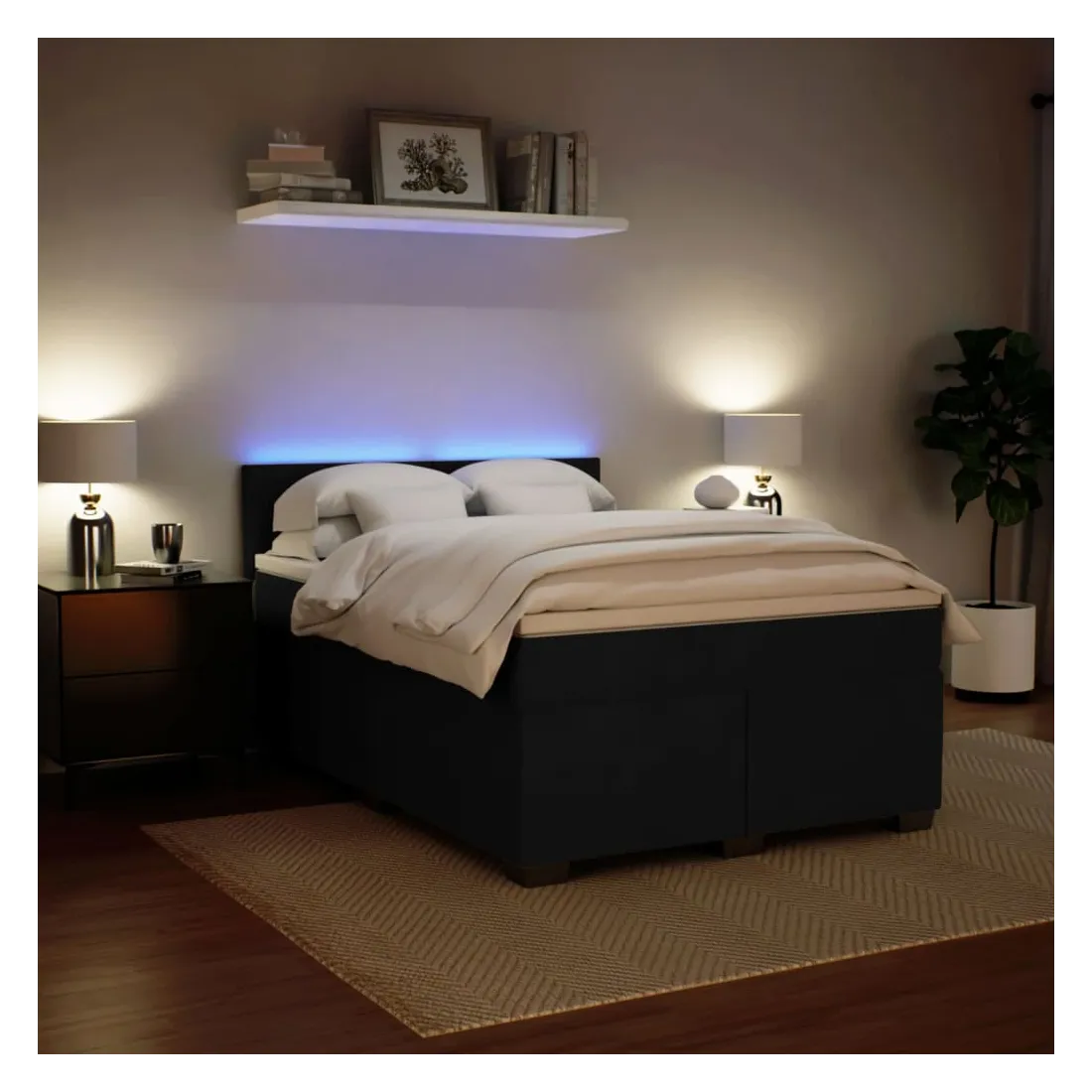 Utilisez ce lit à sommier pour profiter d'une nuit de sommeil réparatrice ! Il vous offre une relaxation maximale et un sommeil agréable. Matériau doux et confortable : le tissu en velours présente une surface douce et lisse qui offre une sensation agréable contre la peau, vous apportant chaleur et confort ultime.Matelas à ressorts ensachés : ce matelas à ressorts ensachés comporte des ressorts ensachés individuels qui fonctionnent indépendamment pour offrir un soutien personnalisé en réagissant uniquement à la pression exercée dans chaque zone. Cette conception empêche « l'enroulement » et réduit le transfert de mouvement par rapport aux matelas traditionnels à ressorts ouverts. Chaque ressort ensaché soutient le corps individuellement.Lumières LED pour une ambiance agréable : ce lit est équipé de lumières LED qui peuvent être facilement réglées pour créer un spectacle lumineux personnalisé. Vous pouvez personnaliser les modes, les couleurs et la luminosité pour améliorer l'ambiance de votre espace intérieur.Surmatelas confortable : ce surmatelas améliore le soutien et le confort grâce à sa surface douce et respirante, tout en prolongeant la durée de vie de votre matelas. Sa housse amovible permet un lavage facile, ce qui facilite l'entretien. Bon à savoir :Ce produit est doté d'un connecteur USB qui nécessite une source d'alimentation USB de 5V certifiée (non incluse).Pour des raisons d'hygiène, le matelas ne peut pas être retourné si l'emballage est retiré ou ouvert.Seule la partie avec un symbole de ciseaux peut être coupée et seule la partie avec l'USB continuera à fonctionner comme avant.