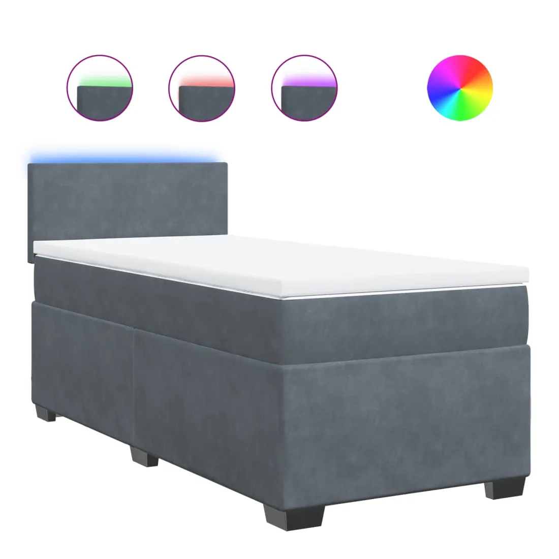 Sommier à lattes de lit avec matelas gris foncé 90x190 cm simple velours