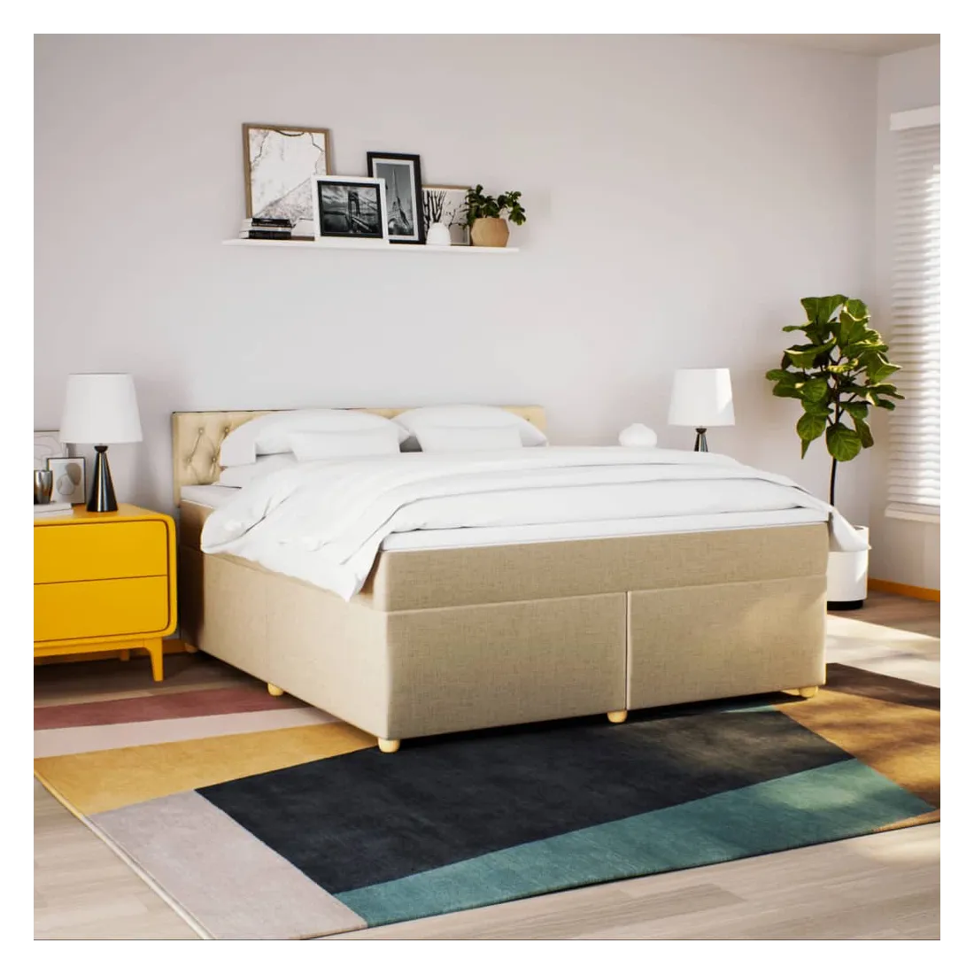 Sommier à lattes de lit avec matelas Crème 180x200 cm Tissu