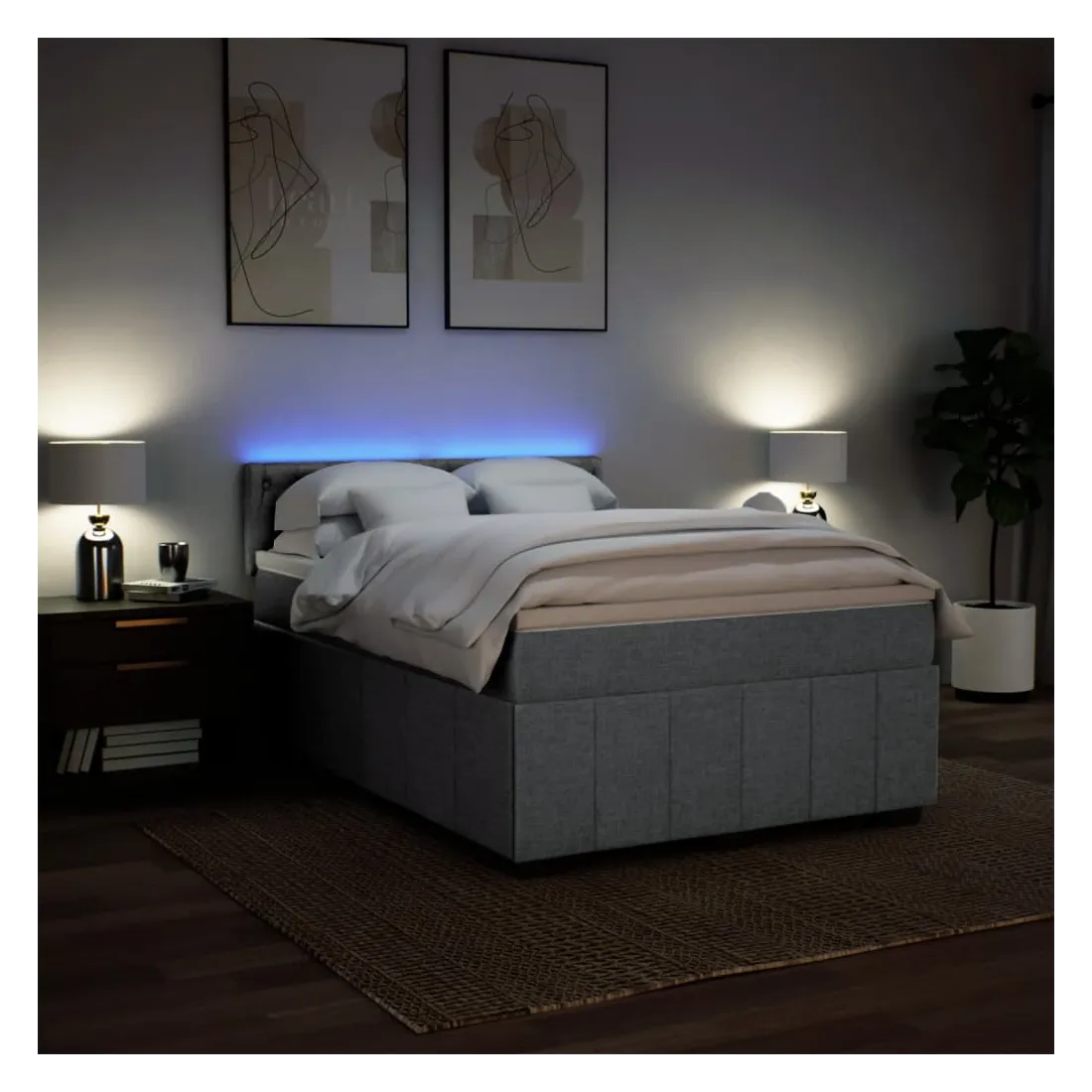 Utilisez ce lit à sommier pour profiter d'une nuit de sommeil réparatrice ! Il vous offre une relaxation maximale et un sommeil agréable. Matériau doux et durable : le tissu en polyester allie douceur, respirabilité et durabilité, vous garantissant un confort et une convivialité ultimes.Matelas à ressorts ensachés : ce matelas à ressorts ensachés comporte des ressorts ensachés individuels qui fonctionnent indépendamment pour offrir un soutien personnalisé en réagissant uniquement à la pression exercée dans chaque zone. Cette conception empêche « l'enroulement » et réduit le transfert de mouvement par rapport aux matelas traditionnels à ressorts ouverts. Chaque ressort ensaché soutient le corps individuellement.Lumières LED pour une ambiance agréable : ce lit est équipé de lumières LED qui peuvent être facilement réglées pour créer un spectacle lumineux personnalisé. Vous pouvez personnaliser les modes, les couleurs et la luminosité pour améliorer l'ambiance de votre espace intérieur.Surmatelas confortable : ce surmatelas améliore le soutien et le confort grâce à sa surface douce et respirante, tout en prolongeant la durée de vie de votre matelas. Sa housse amovible permet un lavage facile, ce qui facilite l'entretien. Bon à savoir :Ce produit est doté d'un connecteur USB qui nécessite une source d'alimentation USB de 5V certifiée (non incluse).Pour des raisons d'hygiène, le matelas ne peut pas être retourné si l'emballage est retiré ou ouvert.Seule la partie avec un symbole de ciseaux peut être coupée et seule la partie avec l'USB continuera à fonctionner comme avant.