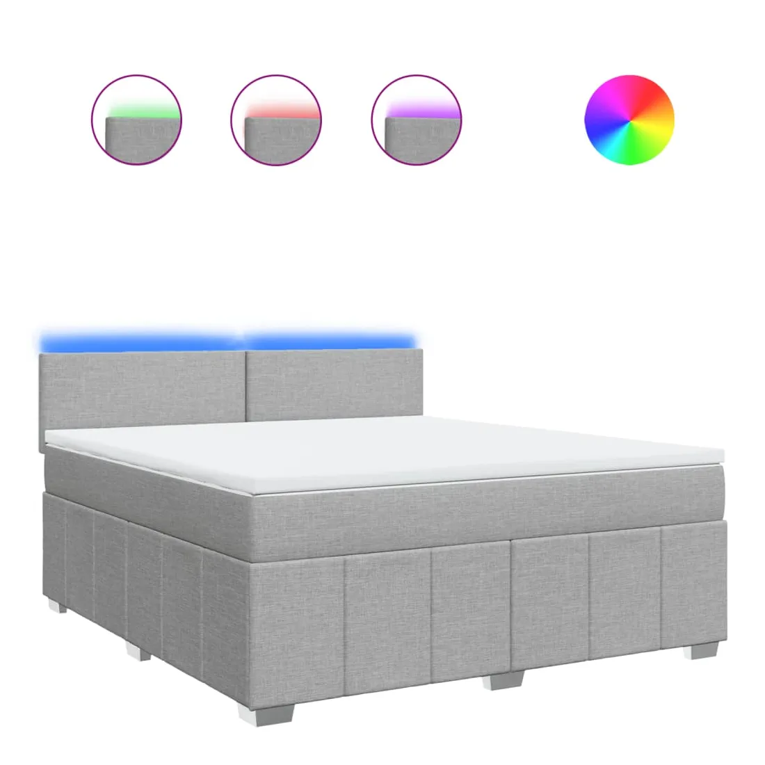 Utilisez ce lit à sommier pour profiter d'une nuit de sommeil réparatrice ! Il vous offre une relaxation maximale et un sommeil agréable. Matériau doux et durable : le tissu en polyester allie douceur, respirabilité et durabilité, vous garantissant un confort et une convivialité ultimes.Matelas à ressorts ensachés : ce matelas à ressorts ensachés comporte des ressorts ensachés individuels qui fonctionnent indépendamment pour offrir un soutien personnalisé en réagissant uniquement à la pression exercée dans chaque zone. Cette conception empêche « l'enroulement » et réduit le transfert de mouvement par rapport aux matelas traditionnels à ressorts ouverts. Chaque ressort ensaché soutient le corps individuellement.Lumières LED pour une ambiance agréable : ce lit est équipé de lumières LED qui peuvent être facilement réglées pour créer un spectacle lumineux personnalisé. Vous pouvez personnaliser les modes, les couleurs et la luminosité pour améliorer l'ambiance de votre espace intérieur.Surmatelas confortable : ce surmatelas améliore le soutien et le confort grâce à sa surface douce et respirante, tout en prolongeant la durée de vie de votre matelas. Sa housse amovible permet un lavage facile, ce qui facilite l'entretien. Bon à savoir :Ce produit est doté d'un connecteur USB qui nécessite une source d'alimentation USB de 5V certifiée (non incluse).Pour des raisons d'hygiène, le matelas ne peut pas être retourné si l'emballage est retiré ou ouvert.Seule la partie avec un symbole de ciseaux peut être coupée et seule la partie avec l'USB continuera à fonctionner comme avant.