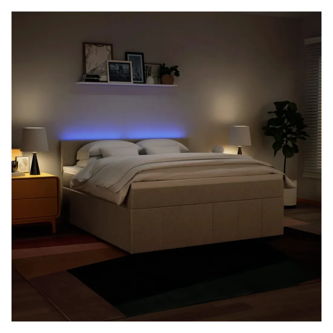 Utilisez ce lit à sommier pour profiter d'une nuit de sommeil réparatrice ! Il vous offre une relaxation maximale et un sommeil agréable. Matériau doux et durable : le tissu en polyester allie douceur, respirabilité et durabilité, vous garantissant un confort et une convivialité ultimes.Matelas à ressorts ensachés : ce matelas à ressorts ensachés comporte des ressorts ensachés individuels qui fonctionnent indépendamment pour offrir un soutien personnalisé en réagissant uniquement à la pression exercée dans chaque zone. Cette conception empêche « l'enroulement » et réduit le transfert de mouvement par rapport aux matelas traditionnels à ressorts ouverts. Chaque ressort ensaché soutient le corps individuellement.Lumières LED pour une ambiance agréable : ce lit est équipé de lumières LED qui peuvent être facilement réglées pour créer un spectacle lumineux personnalisé. Vous pouvez personnaliser les modes, les couleurs et la luminosité pour améliorer l'ambiance de votre espace intérieur.Surmatelas confortable : ce surmatelas améliore le soutien et le confort grâce à sa surface douce et respirante, tout en prolongeant la durée de vie de votre matelas. Sa housse amovible permet un lavage facile, ce qui facilite l'entretien. Bon à savoir :Ce produit est doté d'un connecteur USB qui nécessite une source d'alimentation USB de 5V certifiée (non incluse).Pour des raisons d'hygiène, le matelas ne peut pas être retourné si l'emballage est retiré ou ouvert.Seule la partie avec un symbole de ciseaux peut être coupée et seule la partie avec l'USB continuera à fonctionner comme avant.