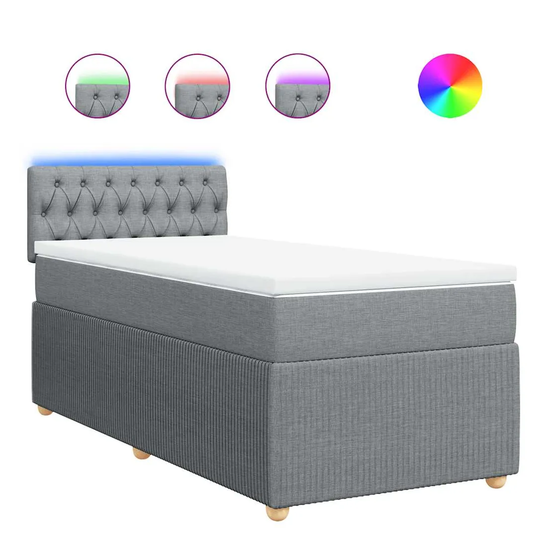 Utilisez ce lit à sommier pour profiter d'une nuit de sommeil réparatrice ! Il vous offre une relaxation maximale et un sommeil agréable. Matériau doux et durable : le tissu en polyester allie douceur, respirabilité et durabilité, vous garantissant un confort et une convivialité ultimes.Matelas à ressorts ensachés : ce matelas à ressorts ensachés comporte des ressorts ensachés individuels qui fonctionnent indépendamment pour offrir un soutien personnalisé en réagissant uniquement à la pression exercée dans chaque zone. Cette conception empêche « l'enroulement » et réduit le transfert de mouvement par rapport aux matelas traditionnels à ressorts ouverts. Chaque ressort ensaché soutient le corps individuellement.Lumières LED pour une ambiance agréable : ce lit est équipé de lumières LED qui peuvent être facilement réglées pour créer un spectacle lumineux personnalisé. Vous pouvez personnaliser les modes, les couleurs et la luminosité pour améliorer l'ambiance de votre espace intérieur.Surmatelas confortable : ce surmatelas améliore le soutien et le confort grâce à sa surface douce et respirante, tout en prolongeant la durée de vie de votre matelas. Sa housse amovible permet un lavage facile, ce qui facilite l'entretien. Bon à savoir :Ce produit est doté d'un connecteur USB qui nécessite une source d'alimentation USB de 5V certifiée (non incluse).Pour des raisons d'hygiène, le matelas ne peut pas être retourné si l'emballage est retiré ou ouvert.Seule la partie avec un symbole de ciseaux peut être coupée et seule la partie avec l'USB continuera à fonctionner comme avant.